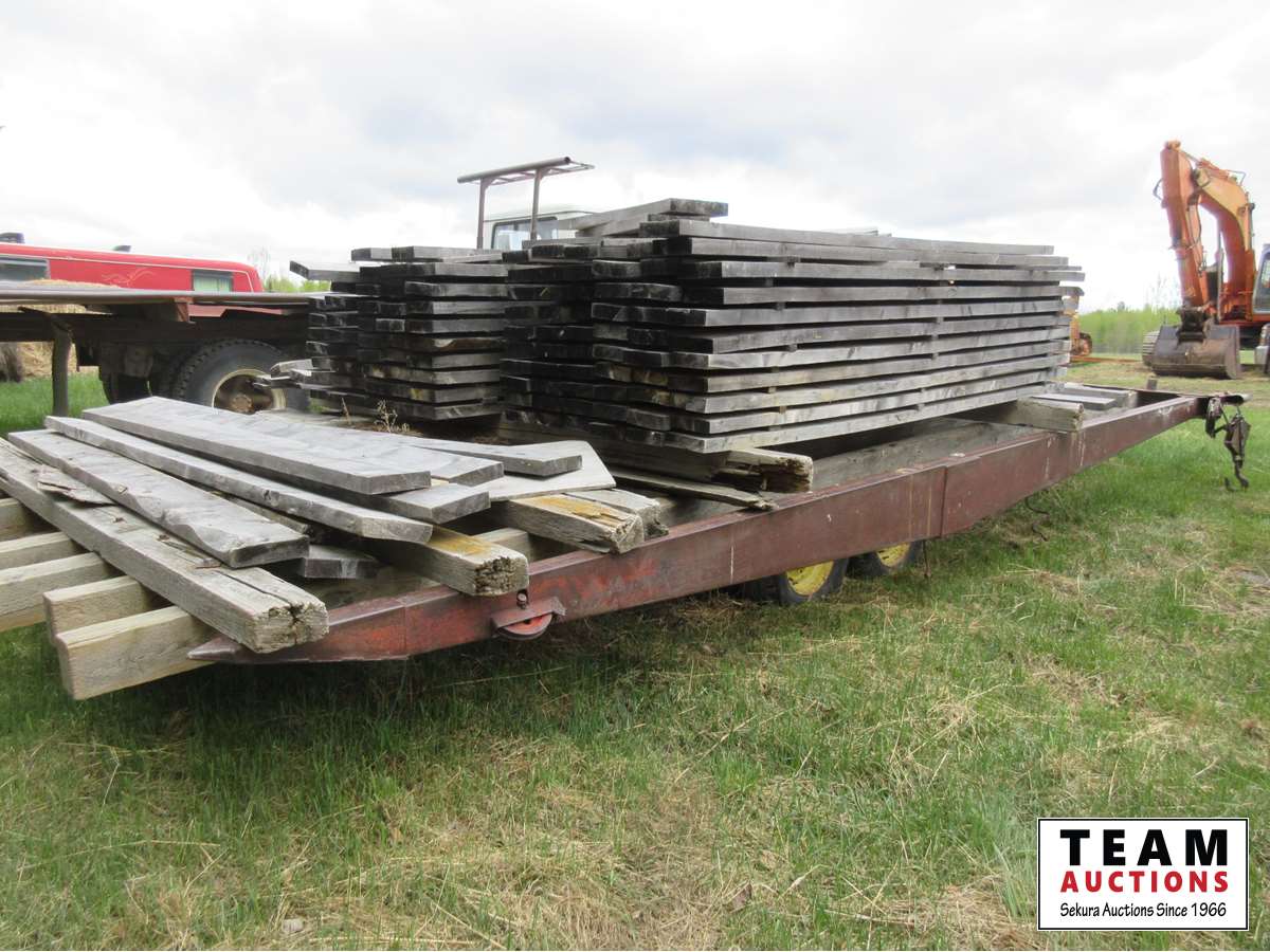 12 ft wide, dualled tandem axles, 16" tires, (100+/-) 2X8X 10' rough black spruce lumber