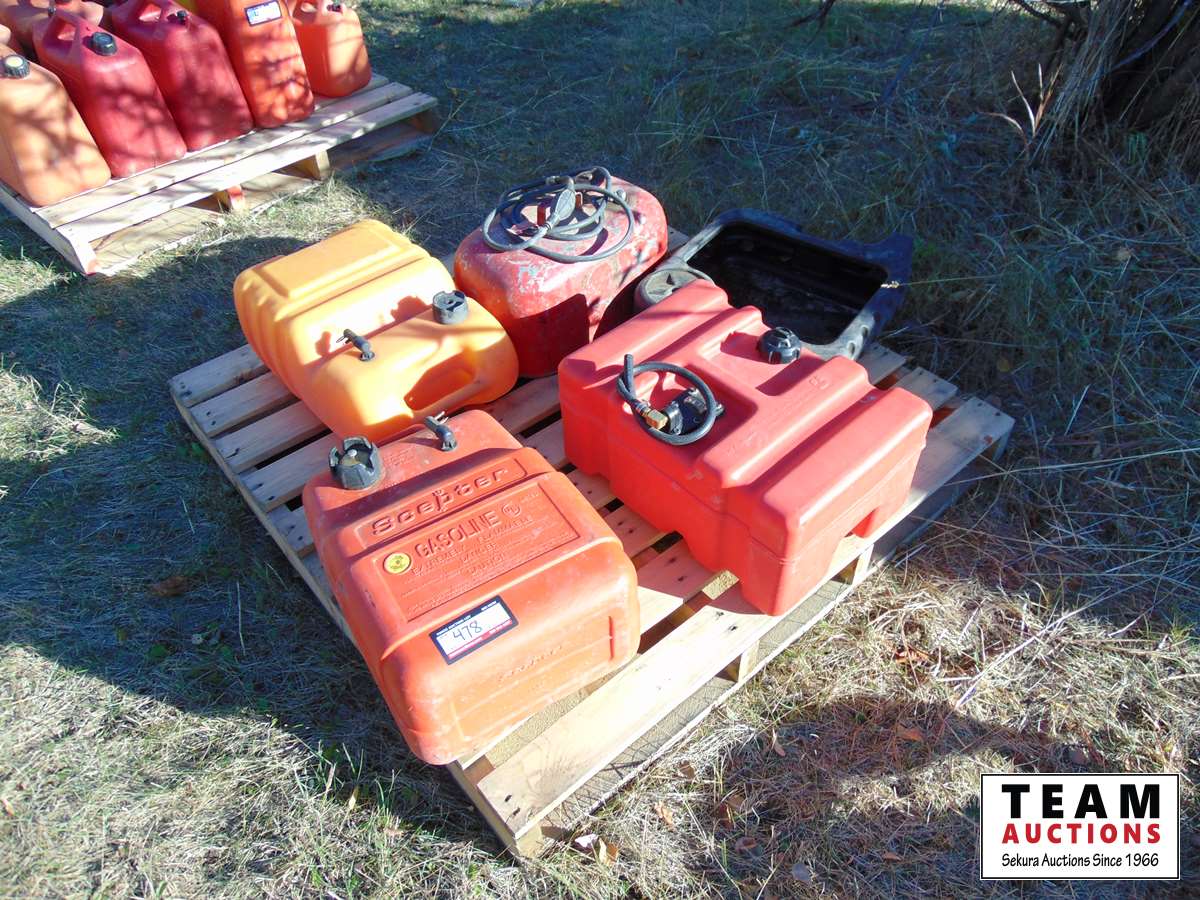 478 (4) Outboard Boat Motor Gas Cans & Oil Change Pan
