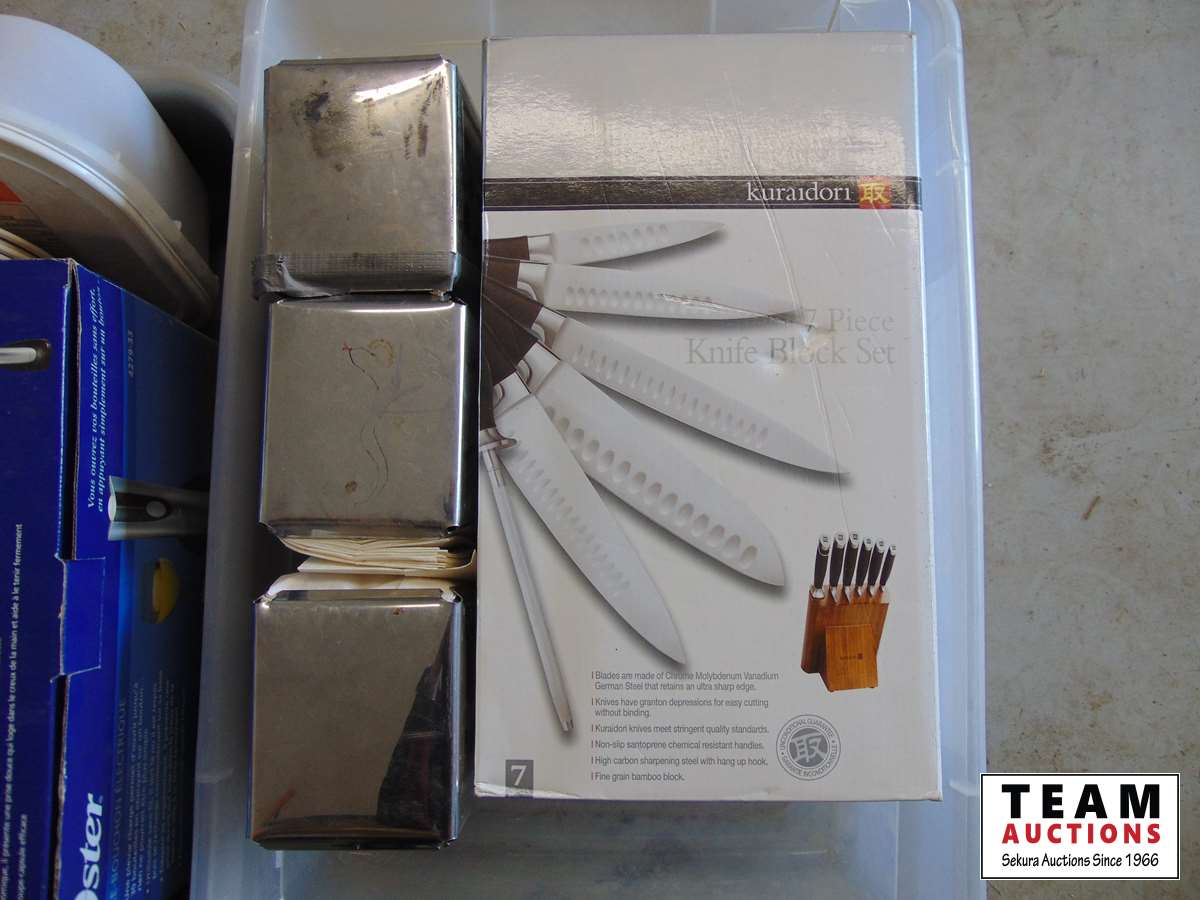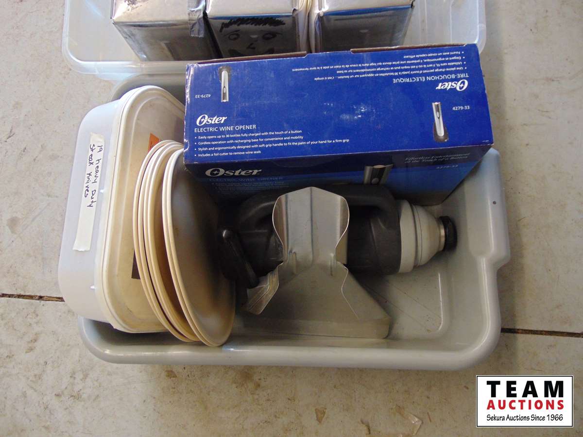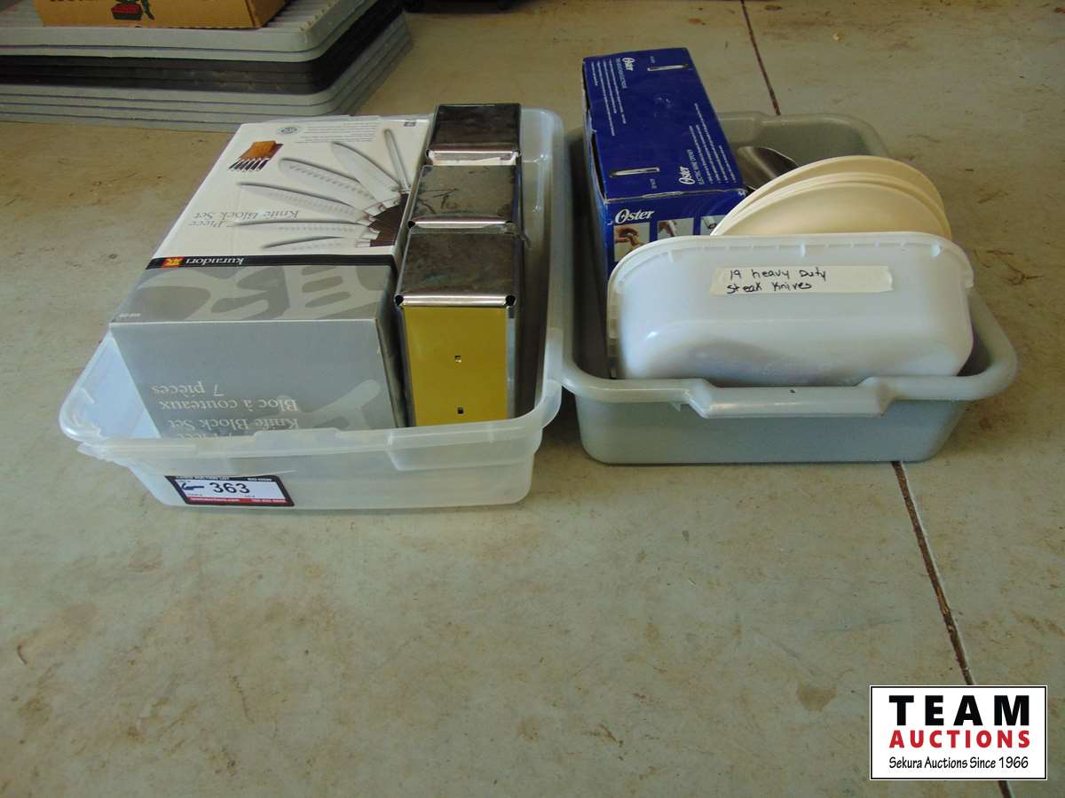 7 piece knife set, electric wine opener, (19) heavy duty steak knives, napkin dispensers & miscellaneous