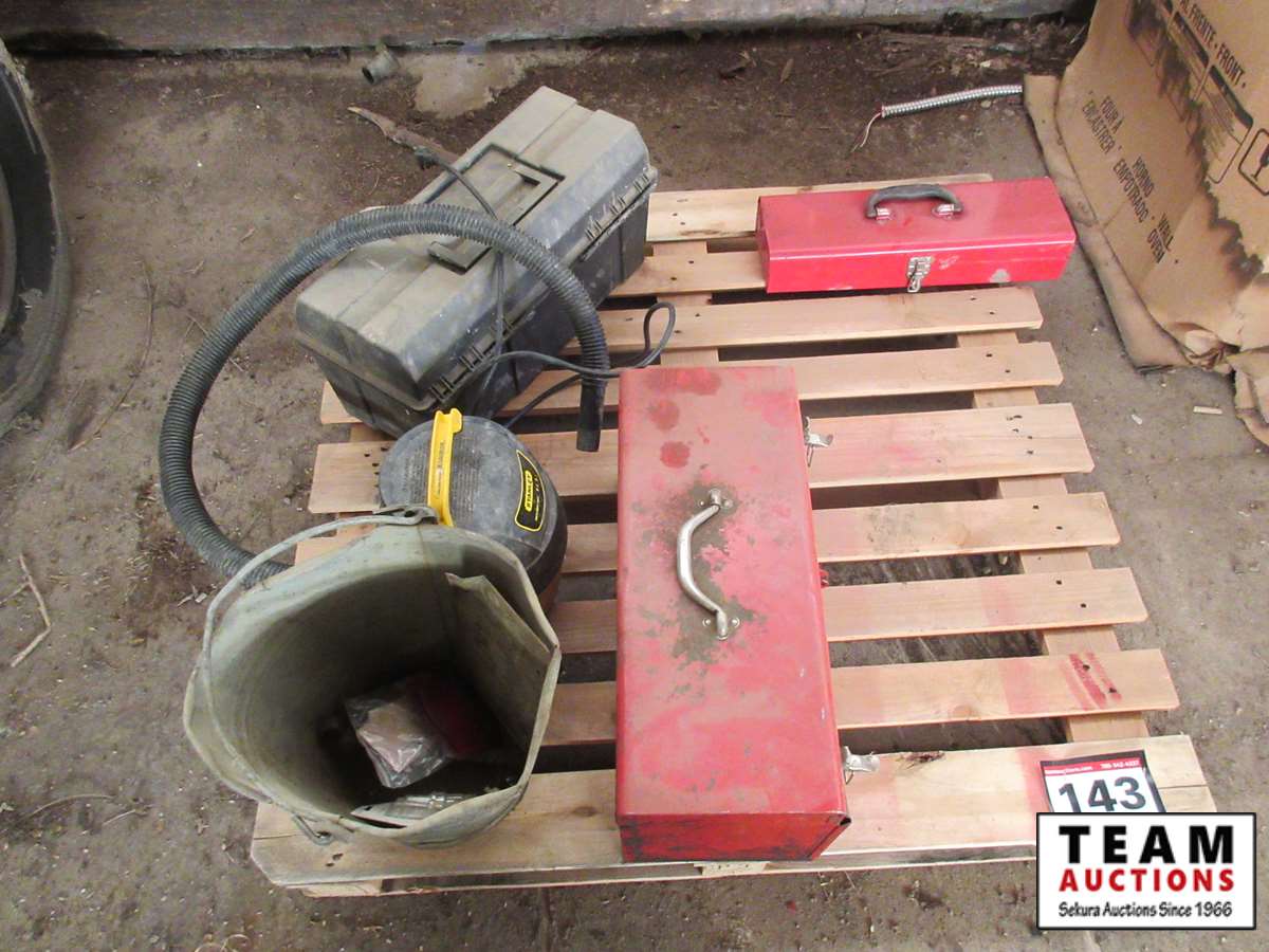 143 (3) Small Tool Boxes, Stanley Shop Vac, Metal Bucket