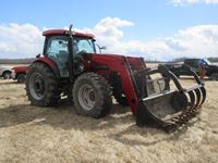 LX 750 Case IH Loader, 8' Q/A bucket & grapple, joystick, 16 speed partial power shift transmission, Cab, heat, A/C, AM FM stereo with Blue Tooth, 540/1000 pto, (4) sets of rear hydraulics, 3 Pt hitch, 420/85R28 frt & 520/85R38 rear tires, manual