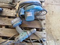 7 1/4" Skil saw, Makita 3/8 drill, B&D 1/2" drill, Makita 7" grinder, Jobmate 3/8 14.4 V cordless drill, (2) Makita 4.5" grinders, mini grease gun