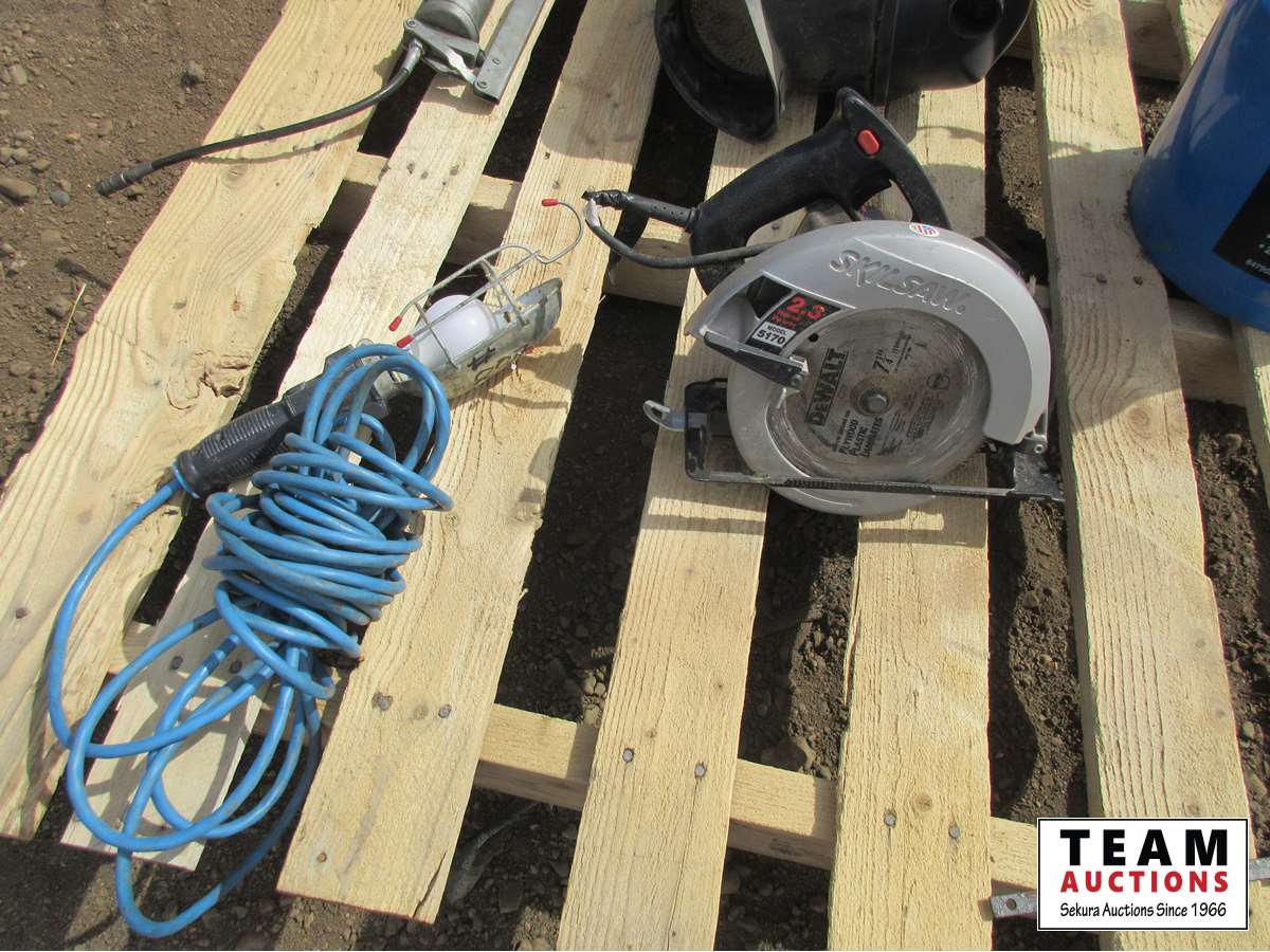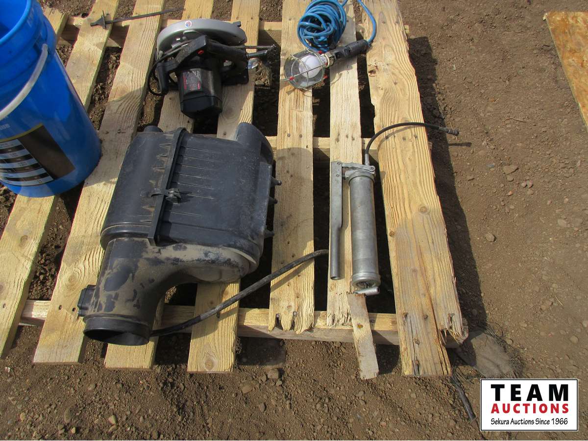 trouble light, grease gun, tire chains, Skil saw, air box off F150