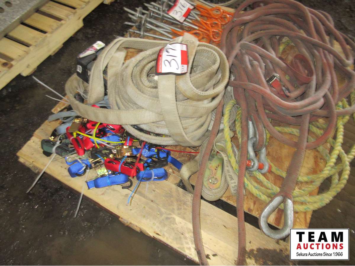 317 Assorted Ratchet Straps, Nylon Slings & Tow Rope