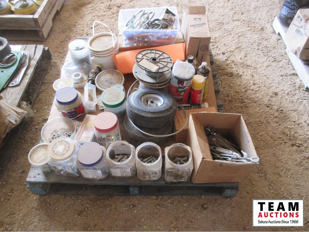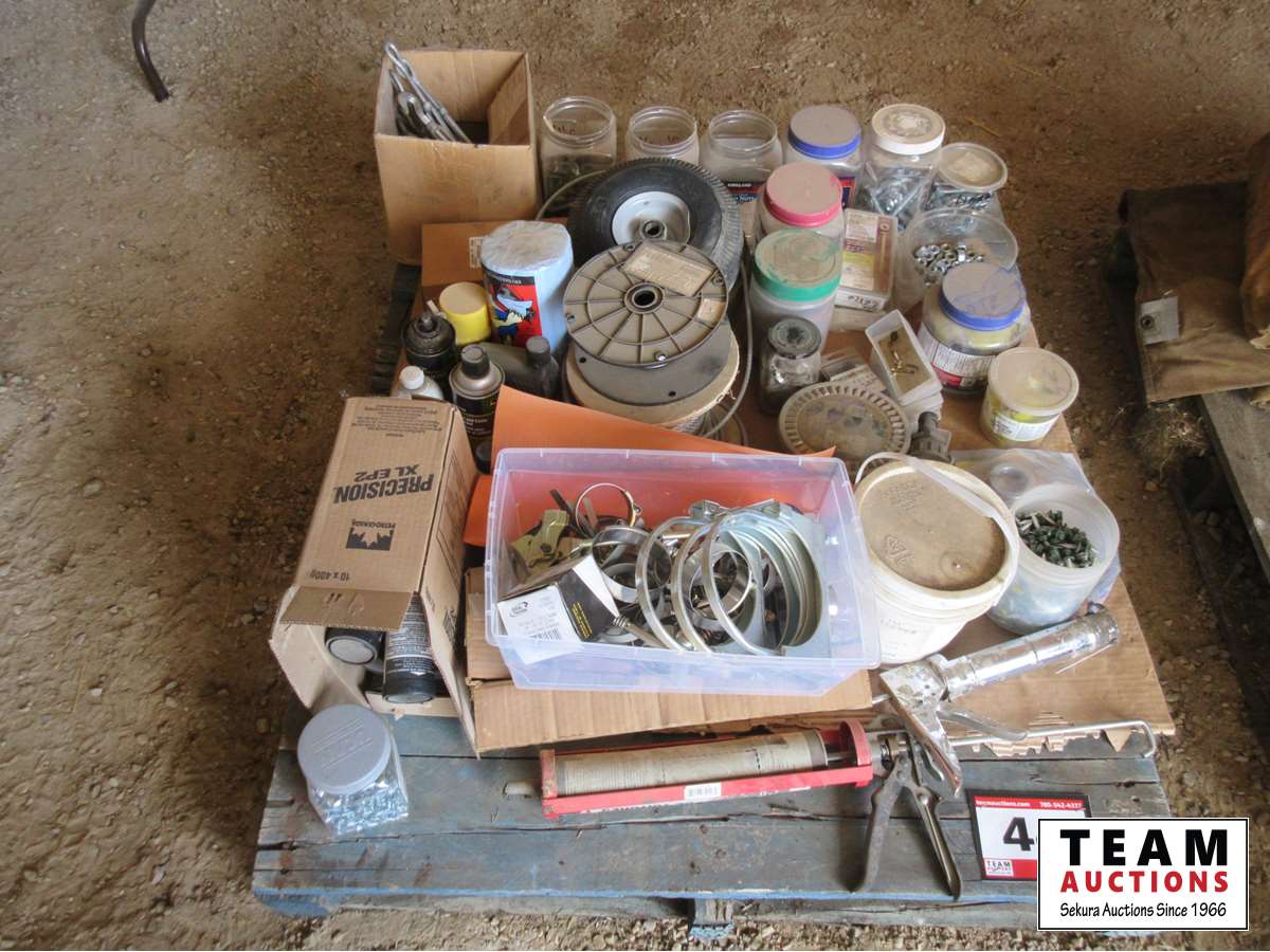 screws, bolts, nuts, cable, turn buckles, wheelbarrow wheels, grease, misc sprays, miscellaneous