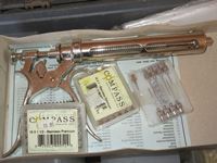 Gallagher M120 electric fencer, syringes, needles, tagging pliers, castrating pliers, etc