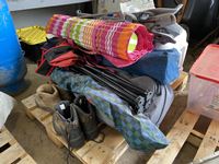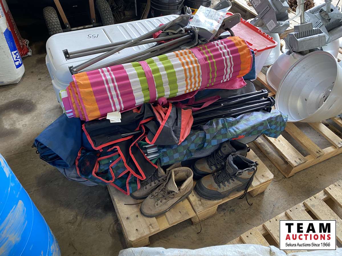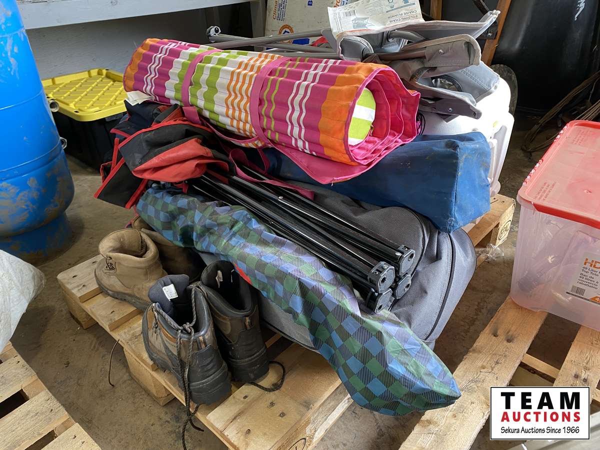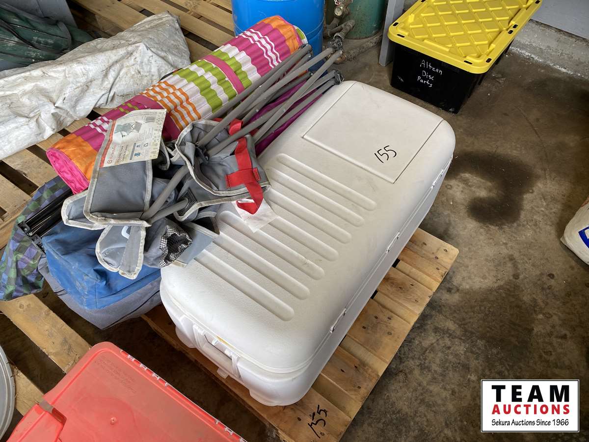 Chairs , cooler, boots, roll up mat