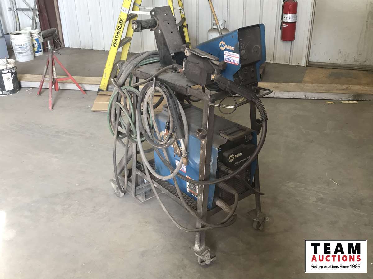 c/w Miller S-74S wire feed, s/n MA250326U, cart, cables, gun, calibrated 12/20