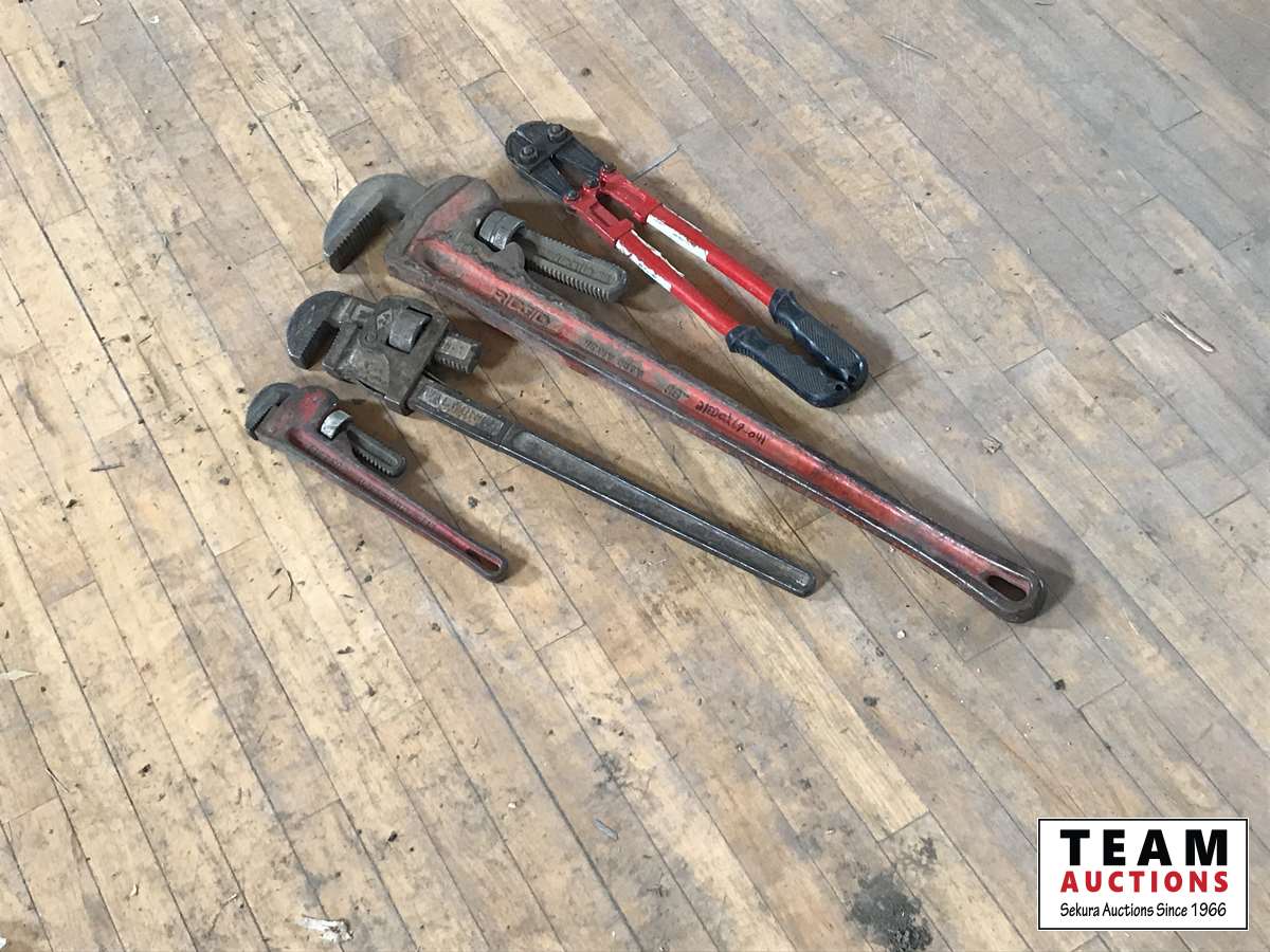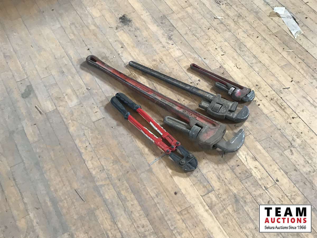 bolt cutters, (3) pipe wrenches