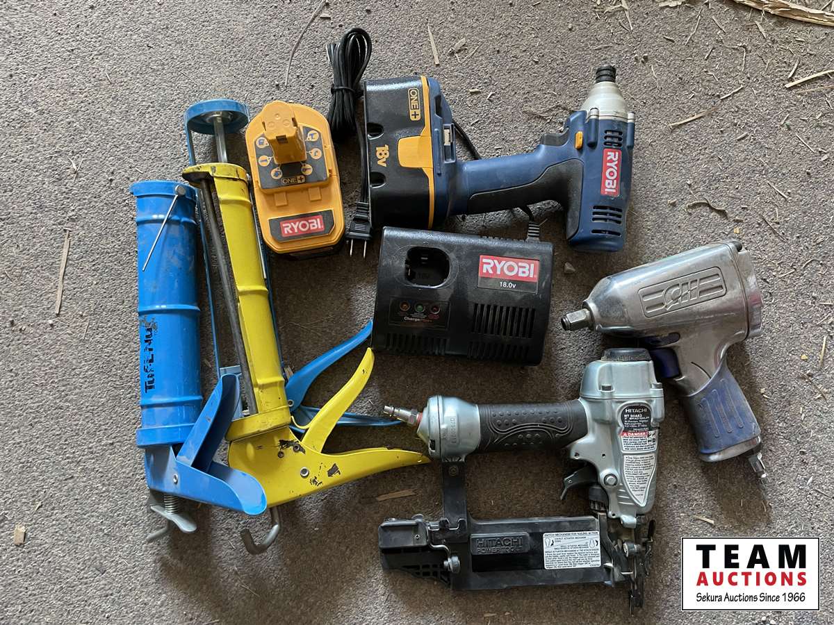 1987 Qty of Drills, Air Nailer, Caulking Guns
