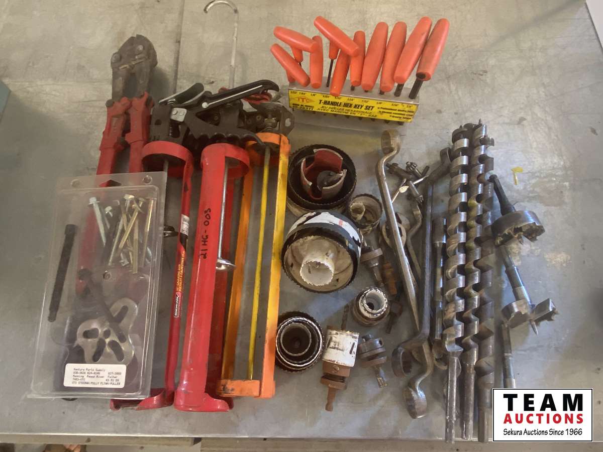 12 Assortment of Wood Drill Bits & Misc Caulking Guns