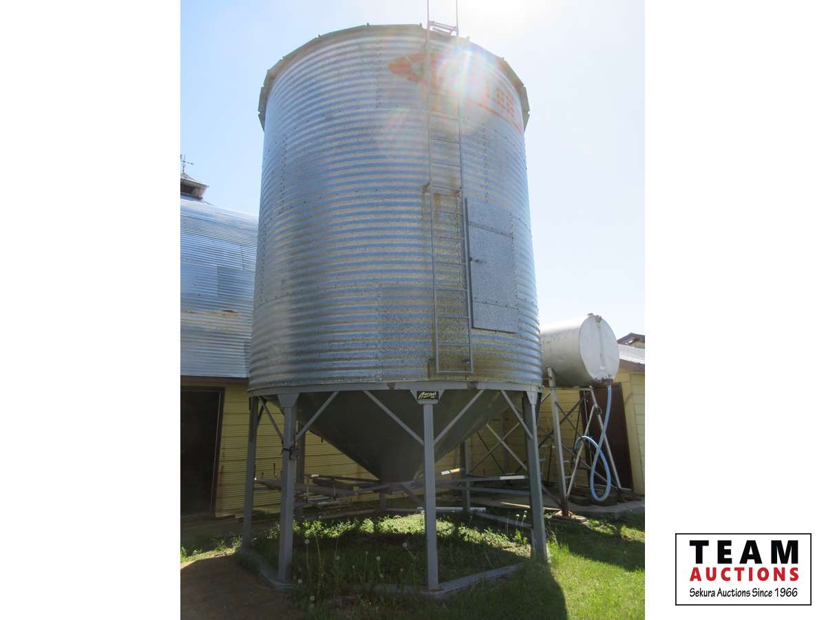 2000 ± bushel cap, Harvest Manufacturing 8 leg hopper, single steel ring foundation, ladder