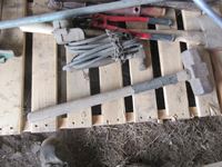 Sledge hammers, post maul, JD PTO air compressor, pipe threaders, bolt cutters, crow bar, axe
