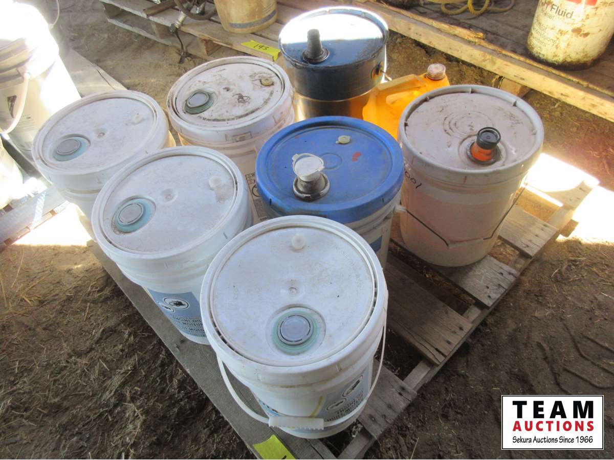 (3) Unopened Rotella T 15W40 motor oil & (1) part pail, (1) part pail of 80W90 gear oil, (3) miscellaneous containers of oil
