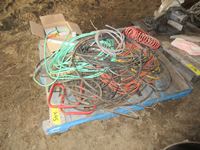 Booster cables, electrical cords, box of splicing tape, mirrors, u joint, miscellaneous parts