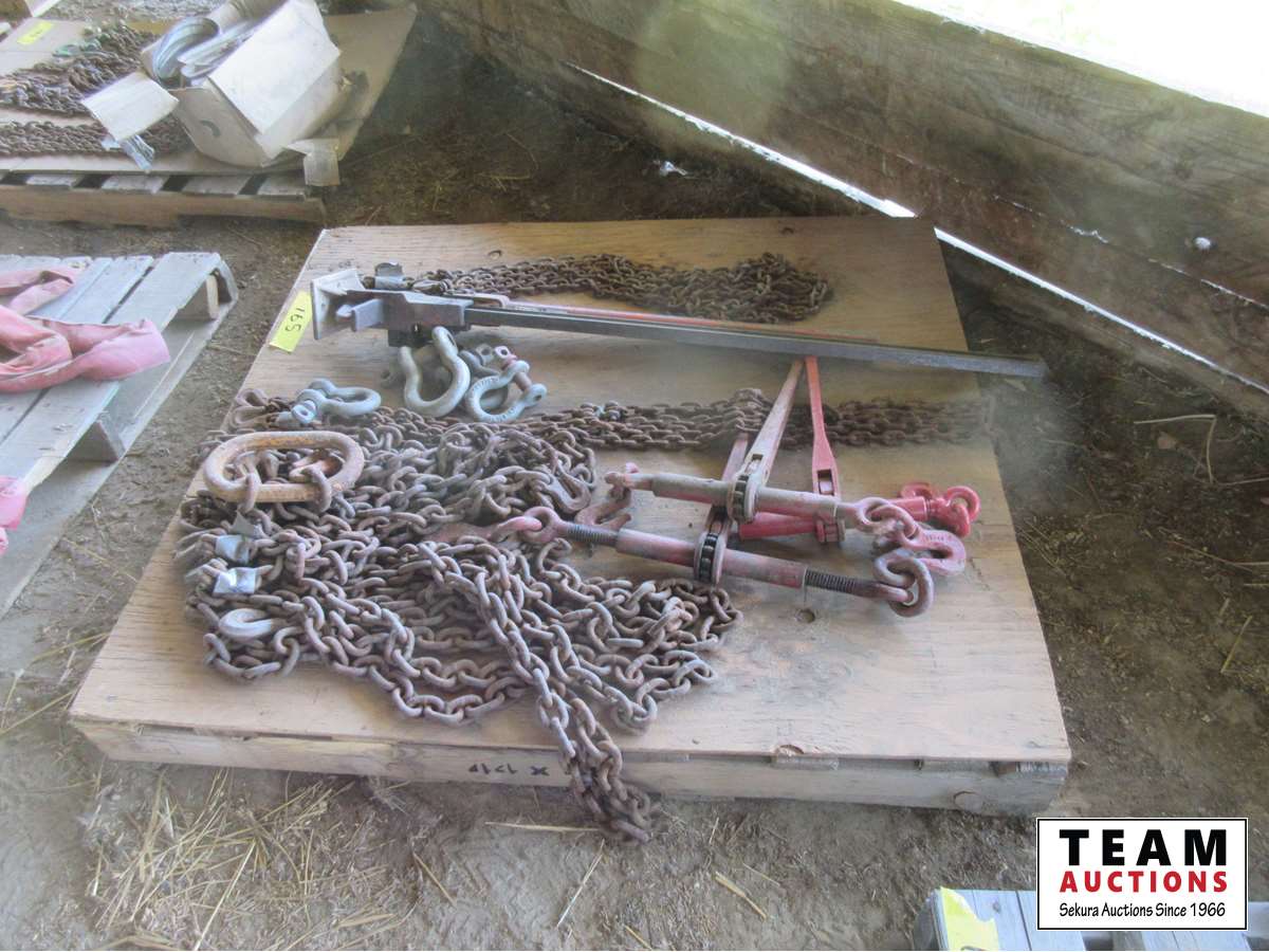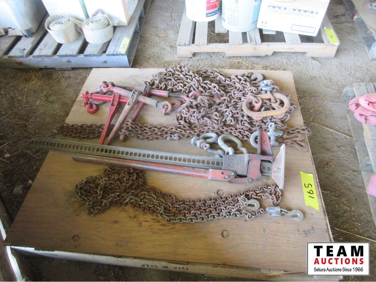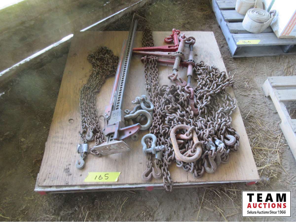 (3) screw load binders, (4) clevises, Jackall jack, chains