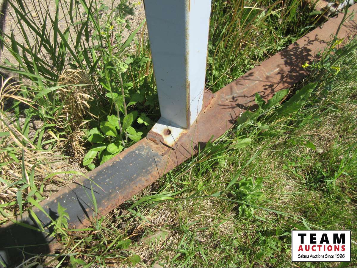 Welded to steel frame. Buyers responsibility to cut bin from frame and load out.