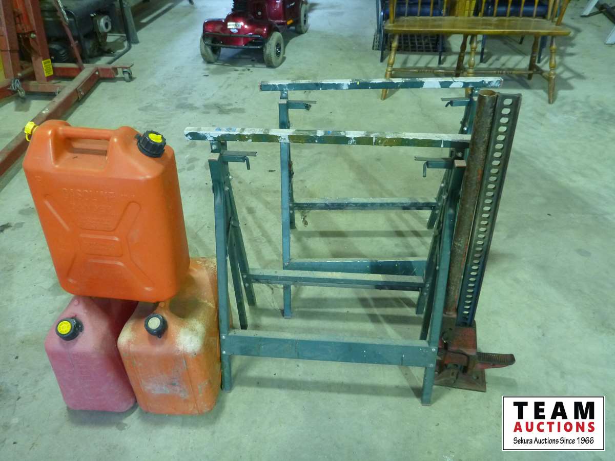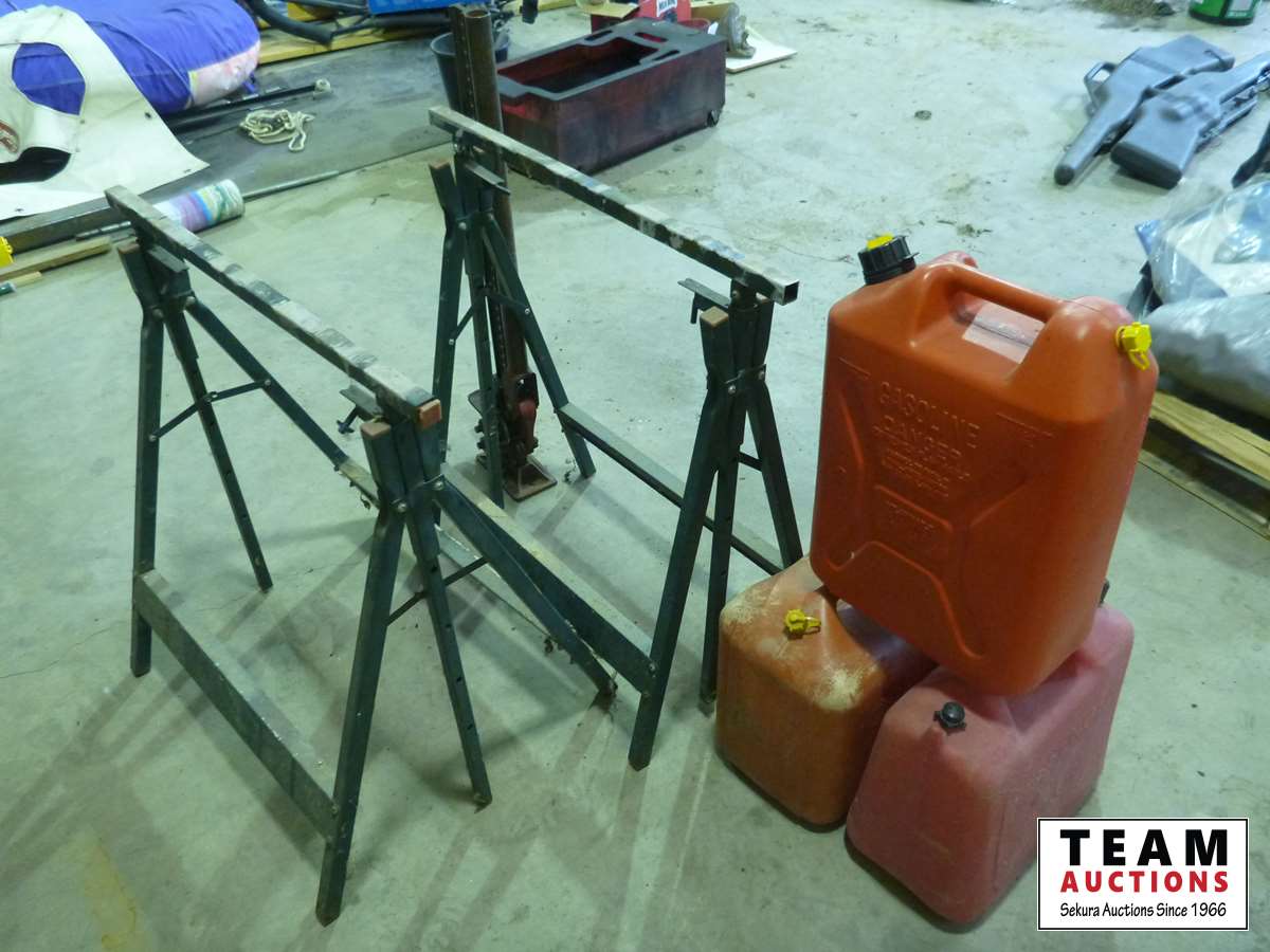 324 (2) Metal Saw Horses, (3) Jerry Cans & a Jackall