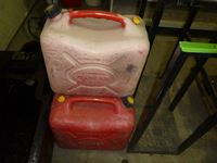 386 (3) Jerry Cans, Large Oil Drain Pan & Metal Rack