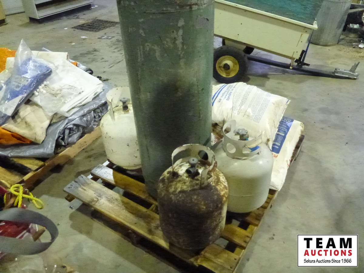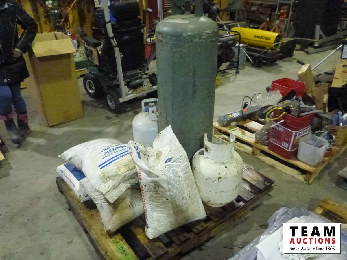 669 (4) Bags of Calcium Chloride Pellets, (2) 20 Lb Propane Bottles & 100 Lb Propane Bottle