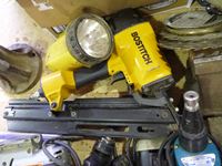 Corded drills, jigsaw, belt sanders, knife sharpener, autobody tool kit, air sander, cable cutter, (2) long measuring tapes, drywall screw gun, miscellaneous tools and hardware