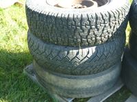 (1) 205/75R14 with rim, (1) 215/70R15 tire, (1) G70-14 with rim, (1) 14 inch tire & rim, (1) F78-14 tire with rim, 215/75R14 tire