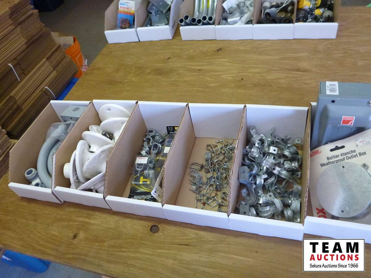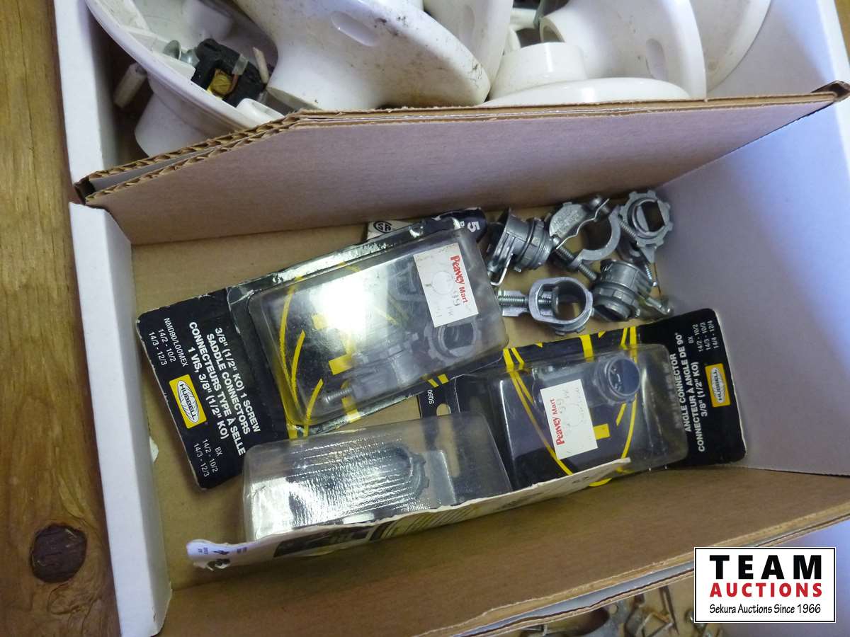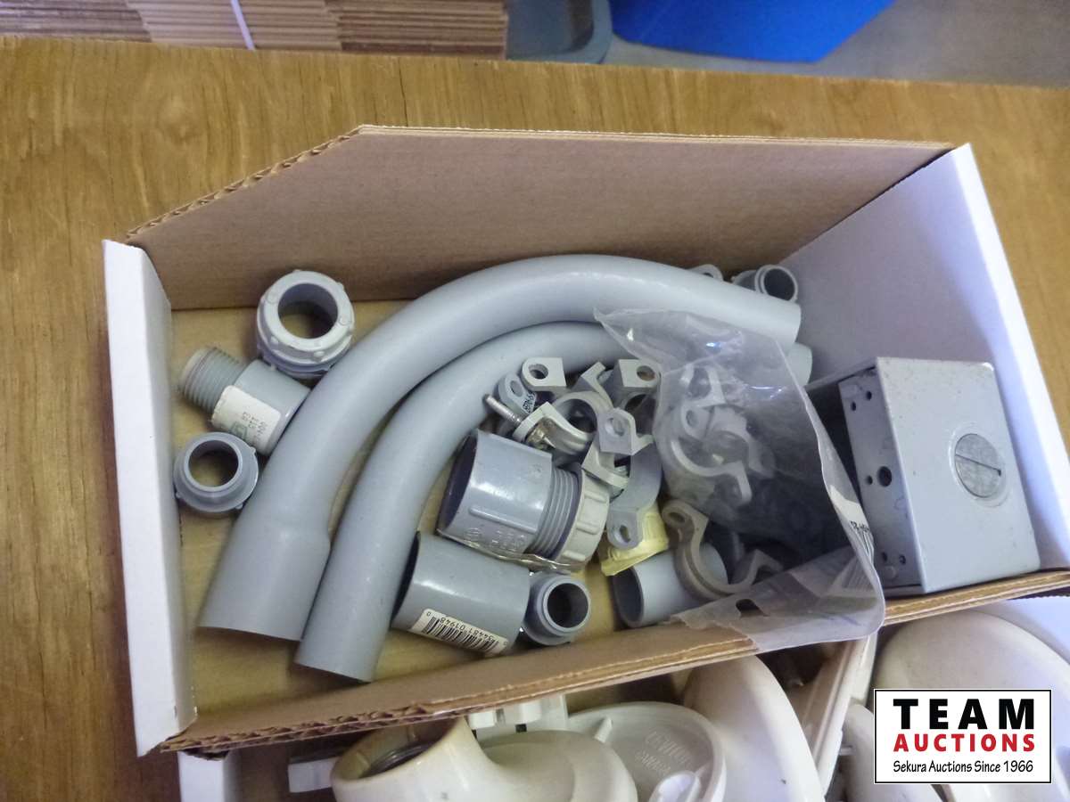 Light socket outlets, conduit elbows and parts, staples, conduit hangers, small beaker panel