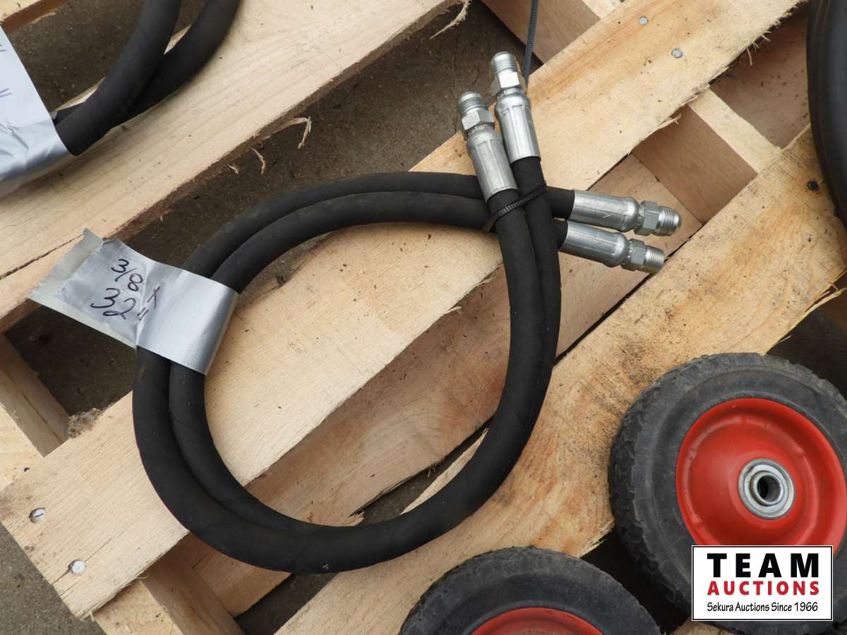 (1) new 3/8 X 76 inch, (2) new 3/8 X 32 inch, (2) 1/2 X 12 ft used once, (2) new 1/2 X 9 ft hydraulic hoses