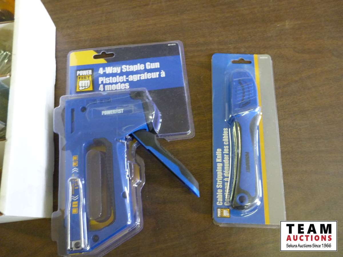 Weller soldering kit, new 4 way stapler, new utility knife, miscellaneous hardware