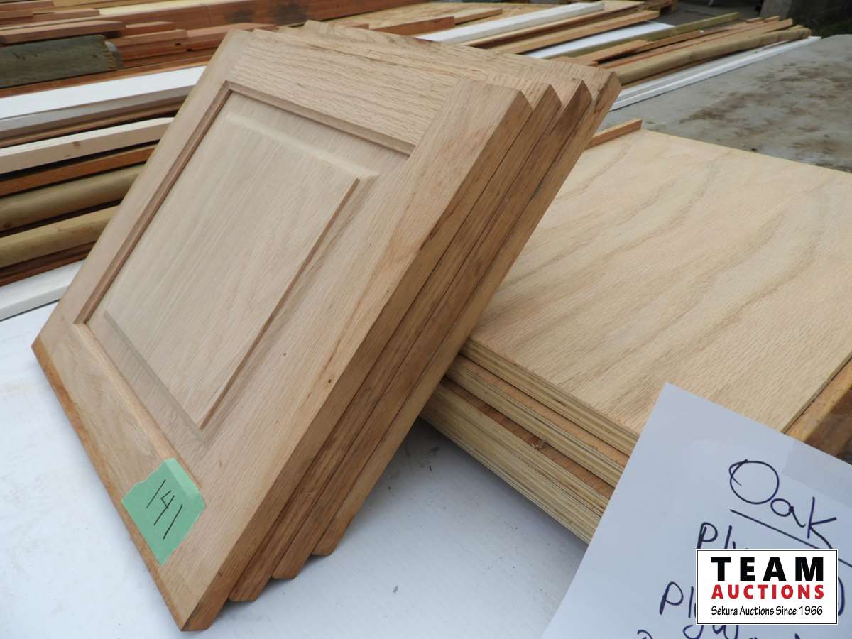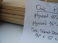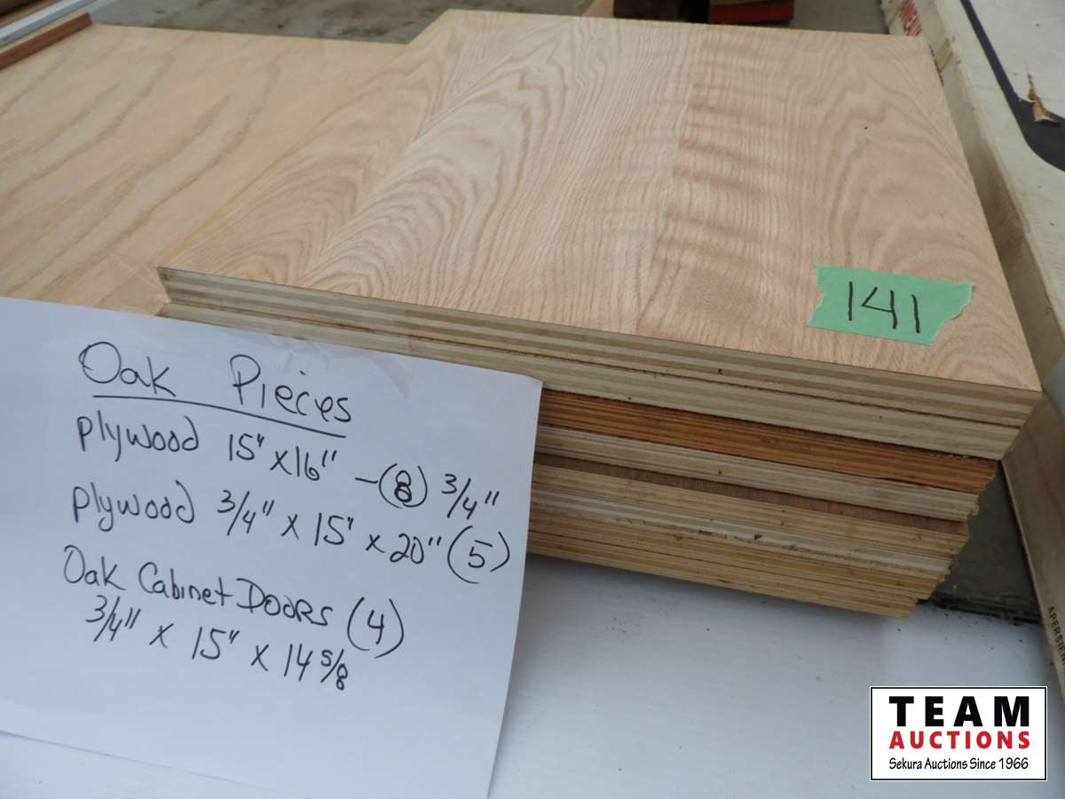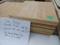 (8) Oak plywood pieces, 3/4 x 15 inch x 16 inch, (5) oak plywood pieces 3/4 X 15 inch X 20 inch, (4) Oak unfinished cabinet doors, 3/4 x 15 inch X 14-5/8 inch