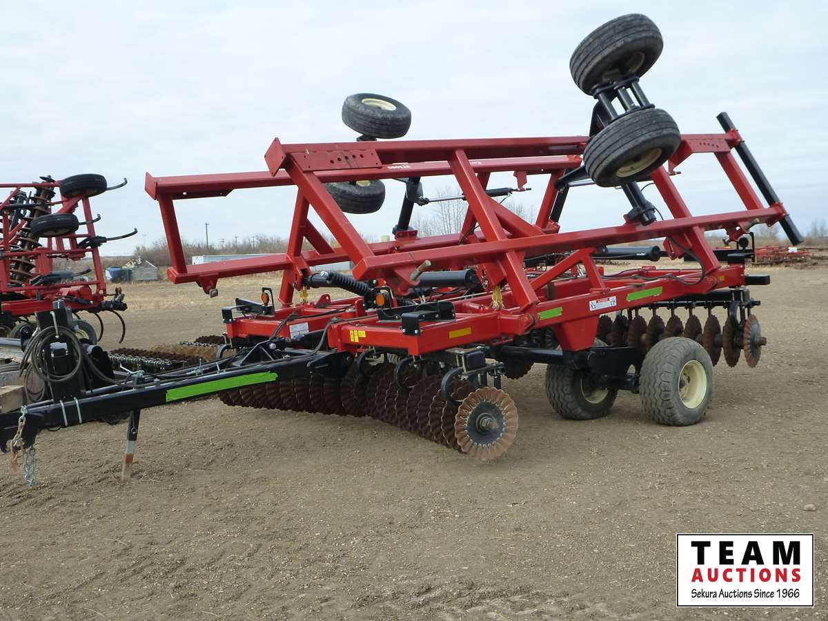 8 inch spacing & 25 inch discs on front & back gangs, 380/55R15 tires on main frame, 12.5-15 tires on wings