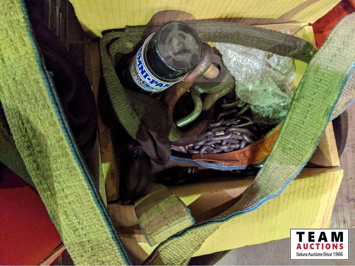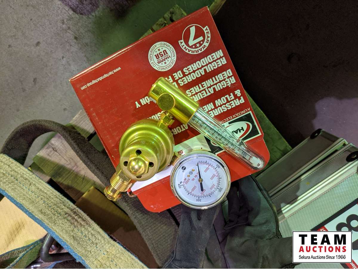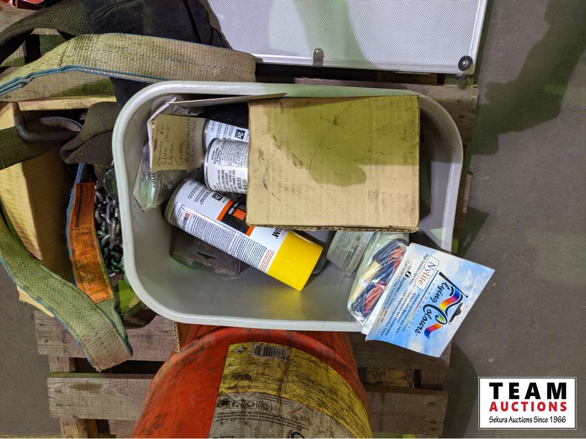 Pressure flow regulator, case with testing items, slings, spray paint, machinery parts