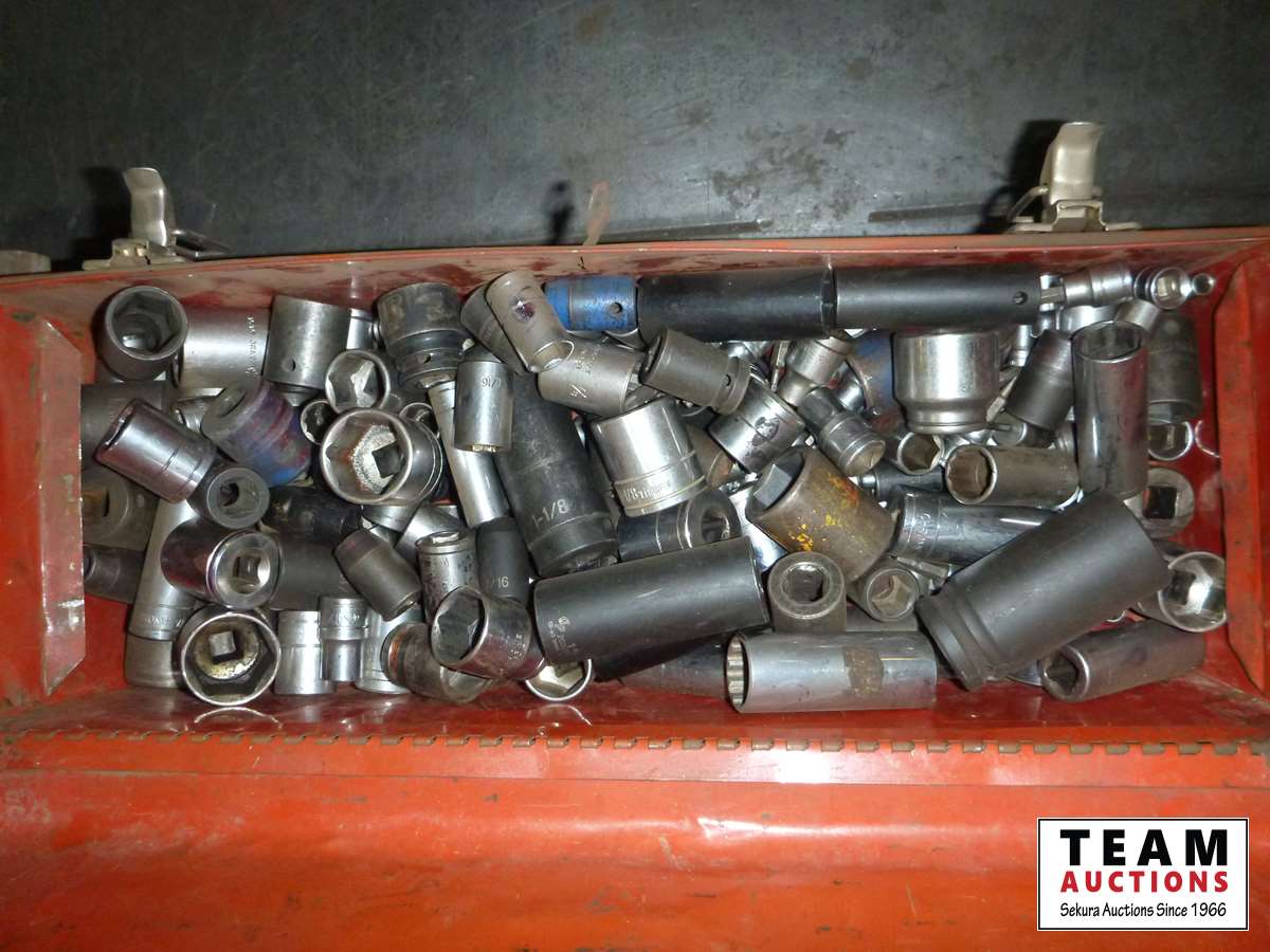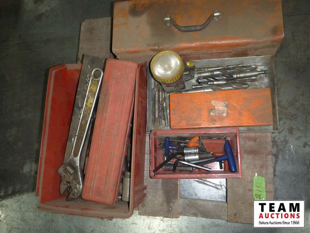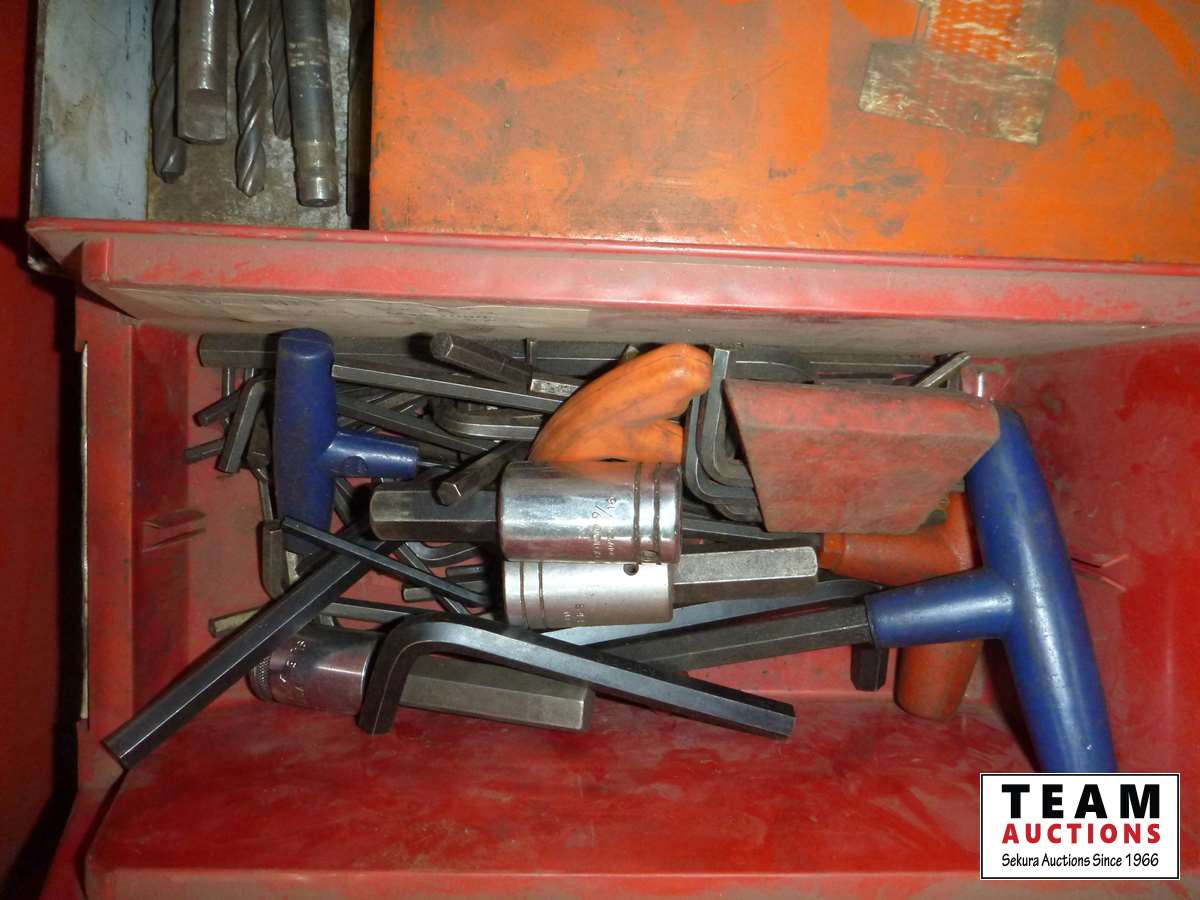 Various tools, drill bits, sockets, Allan wrenches, large crescent