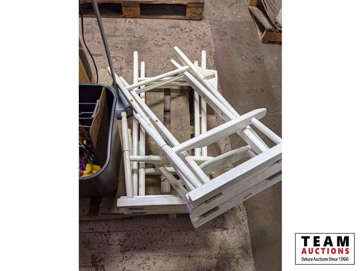 Safety gear, office supplies, floor lamp, (2) wood folding stands