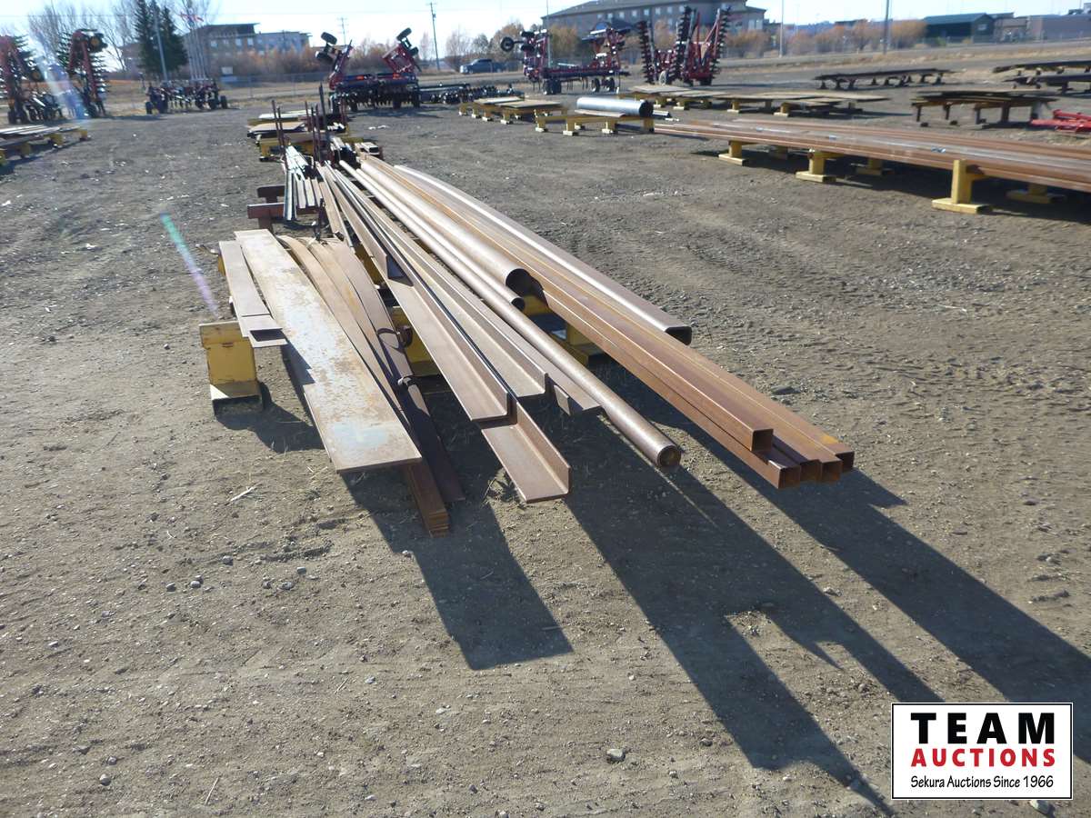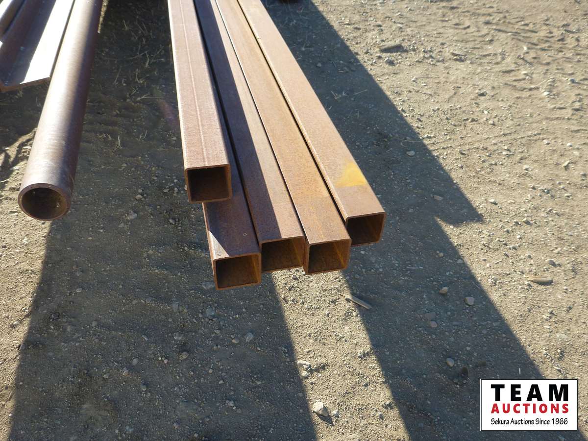 Variety of square tube, pipe, flat bar, channel iron, all sizes and lengths, (4) stands included