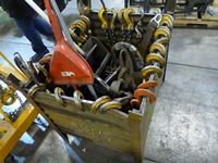 225 Steel Box of Lifting Chains, Mechanic's Stool, Dust Pan & Brooms