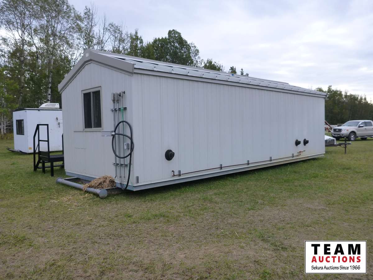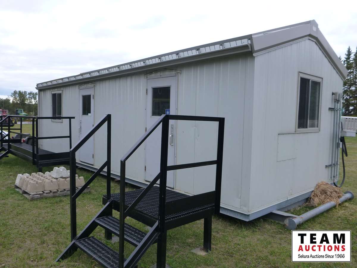 Manufactured by Red River Industries. This is a well built unit designed to be towed around with any type of equipment to your job sites. All the out side railing are new and custom built for this building.