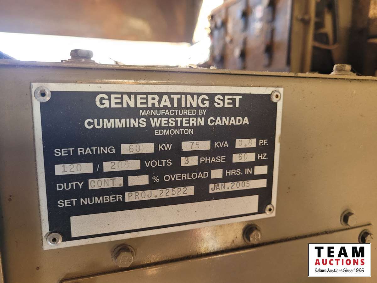 3.9 L Cummins, 60 kw, 3 phase has single phase converter, 75 gallon fuel tank