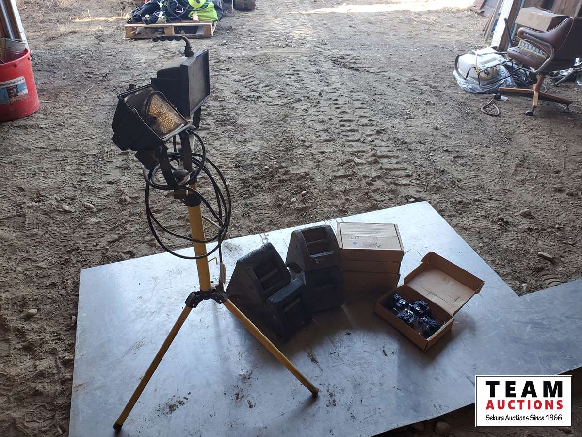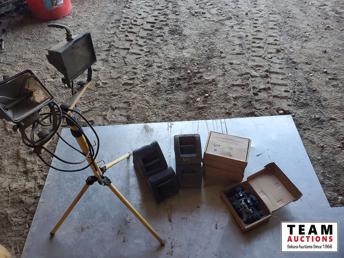 42 (5) Boxes Box Link, (2) Sets Wheel Chocks & Stand Up Shop Light (Unused)