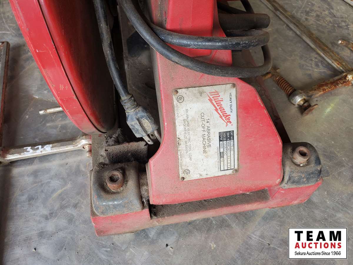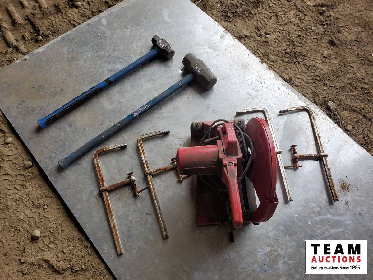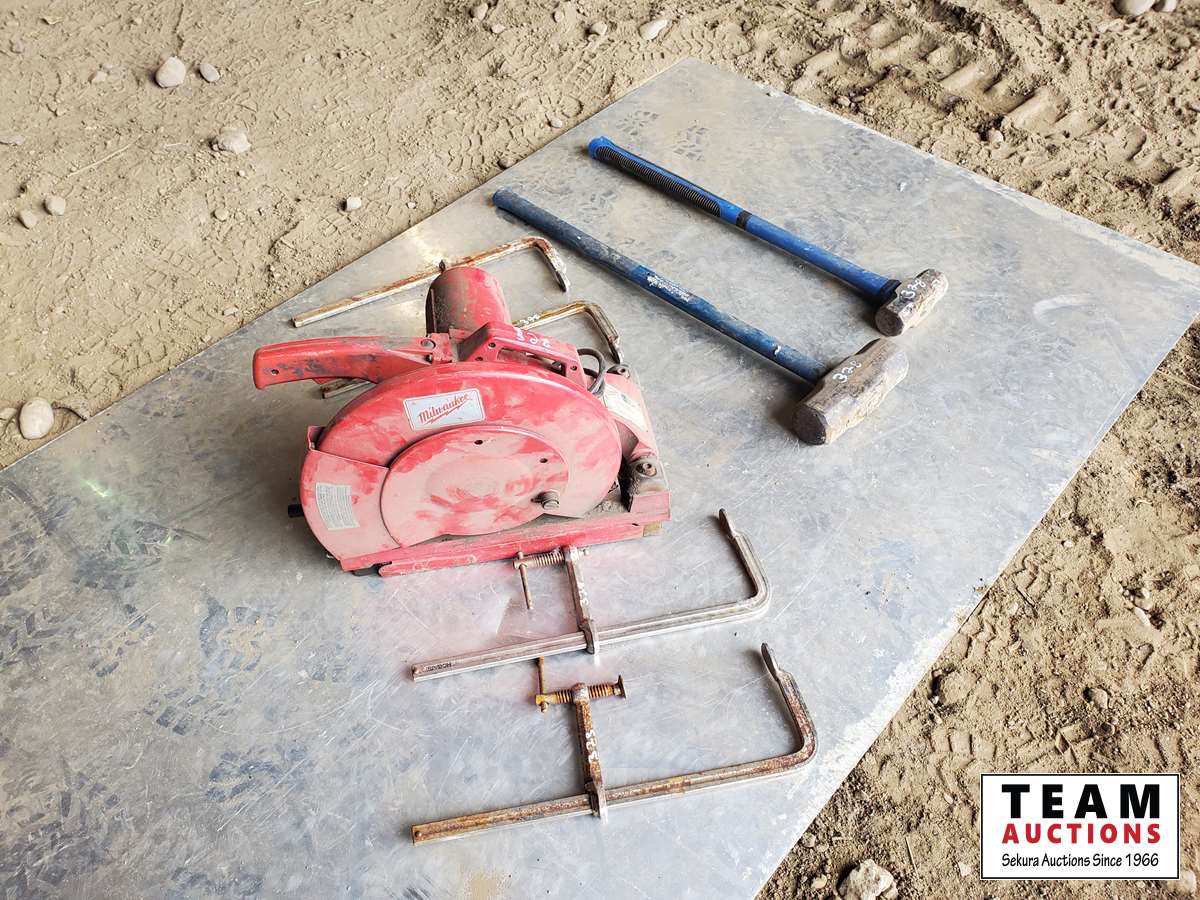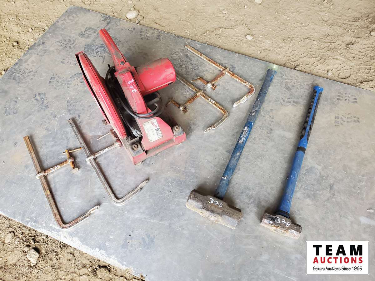 48 Milwaukee Chop Saw, (4) C Clamps, (2) Sledge Hammers