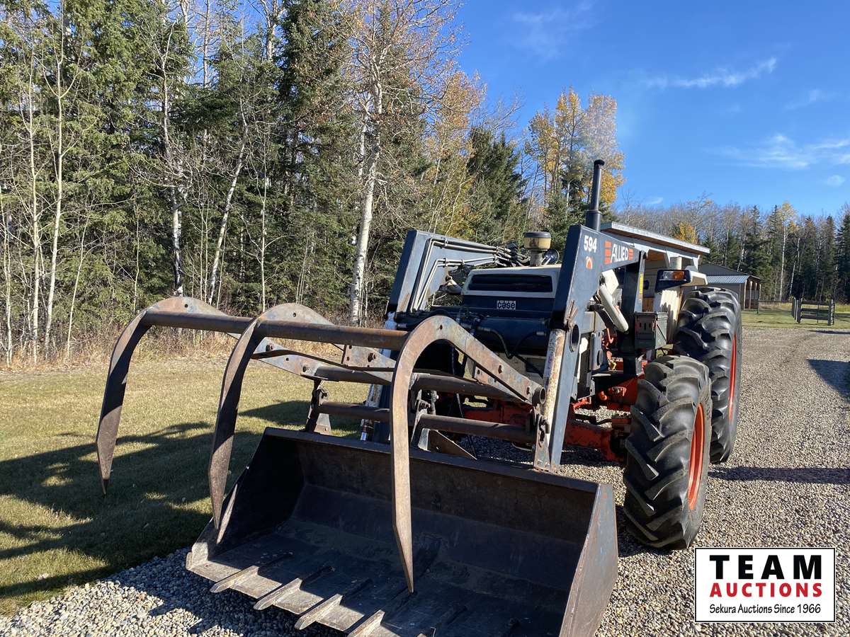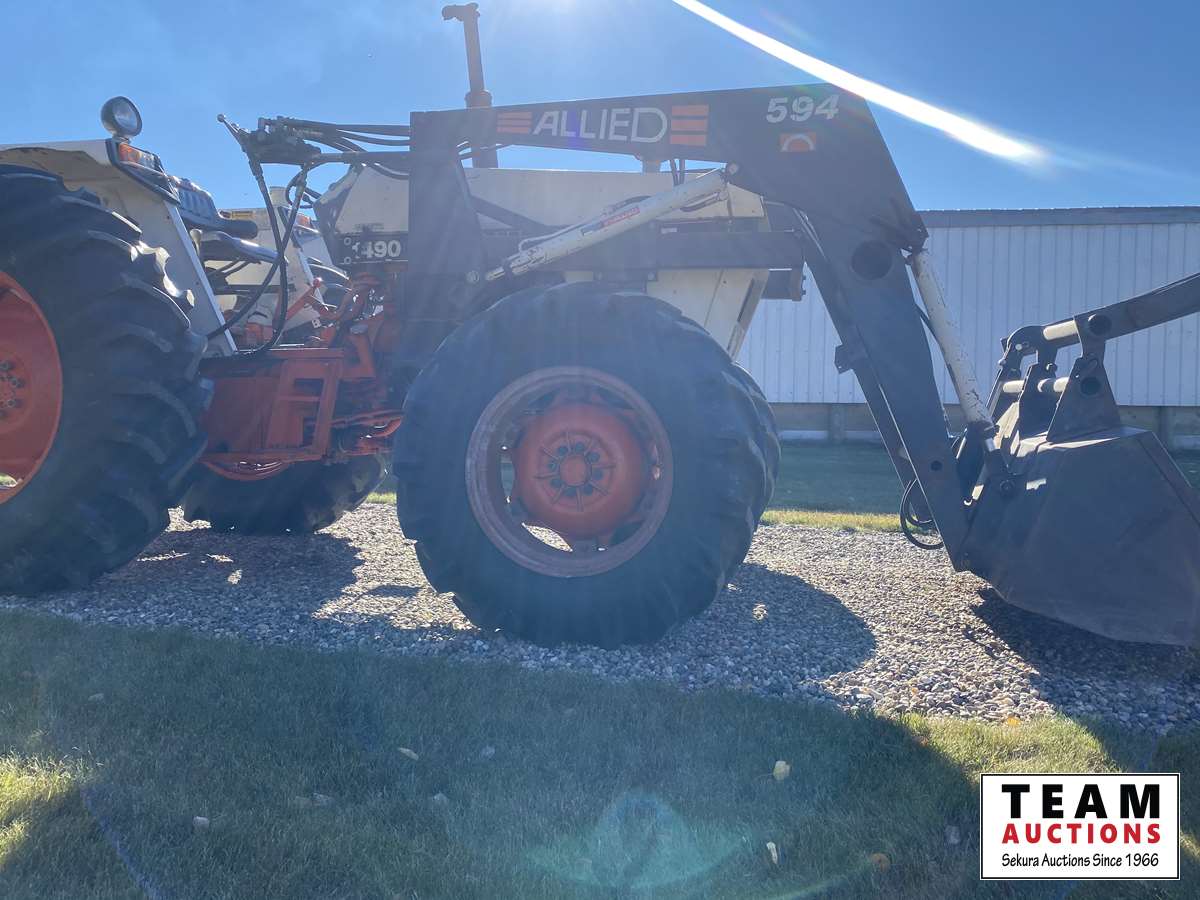 Allied 594 loader, 71 inch bucket, diesel engine, 540 PTO, 3 PT, 2 hydraulic outlets, 90% 13.6-24 front, 80% 18.4-34 rear