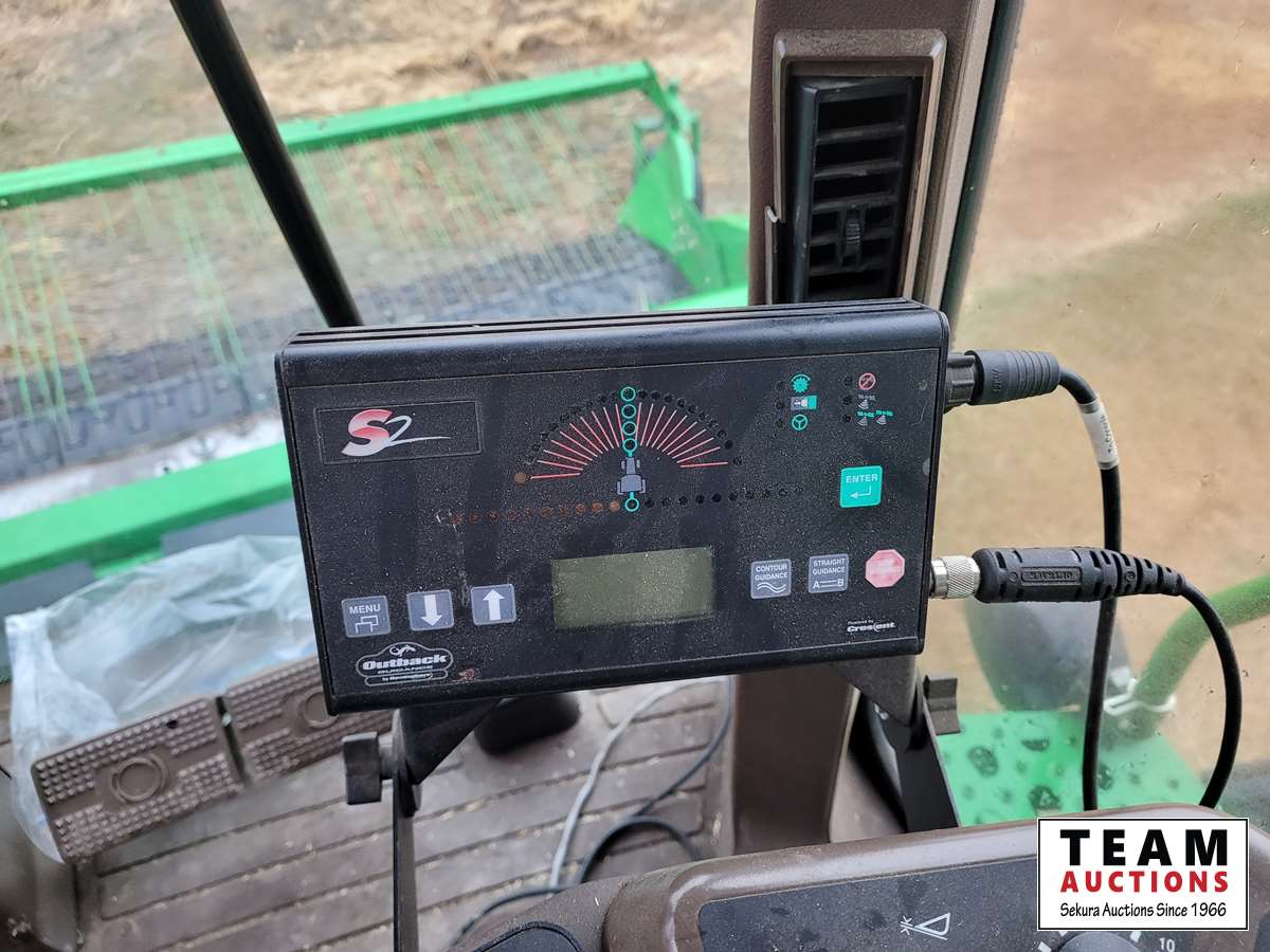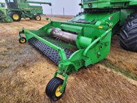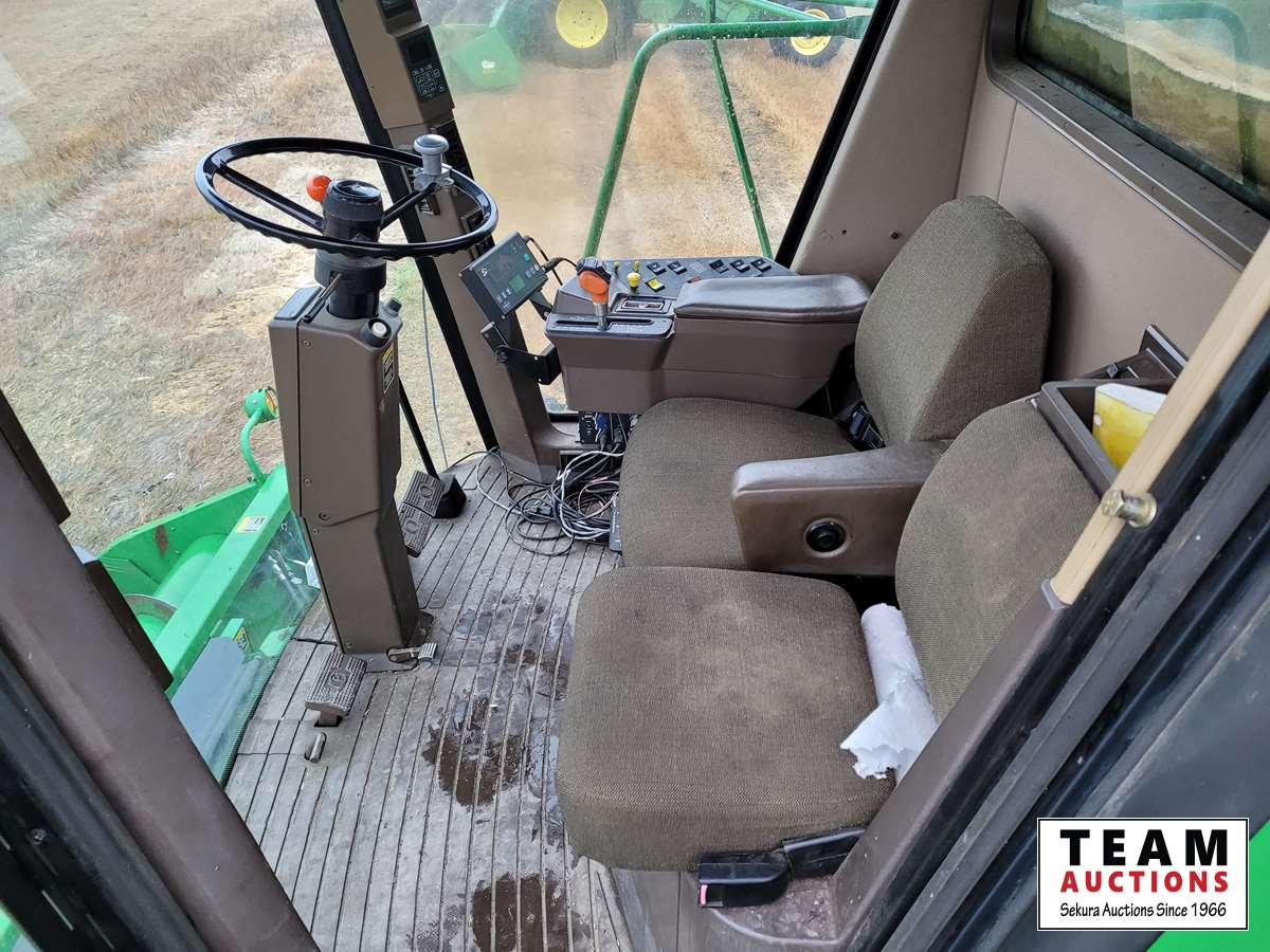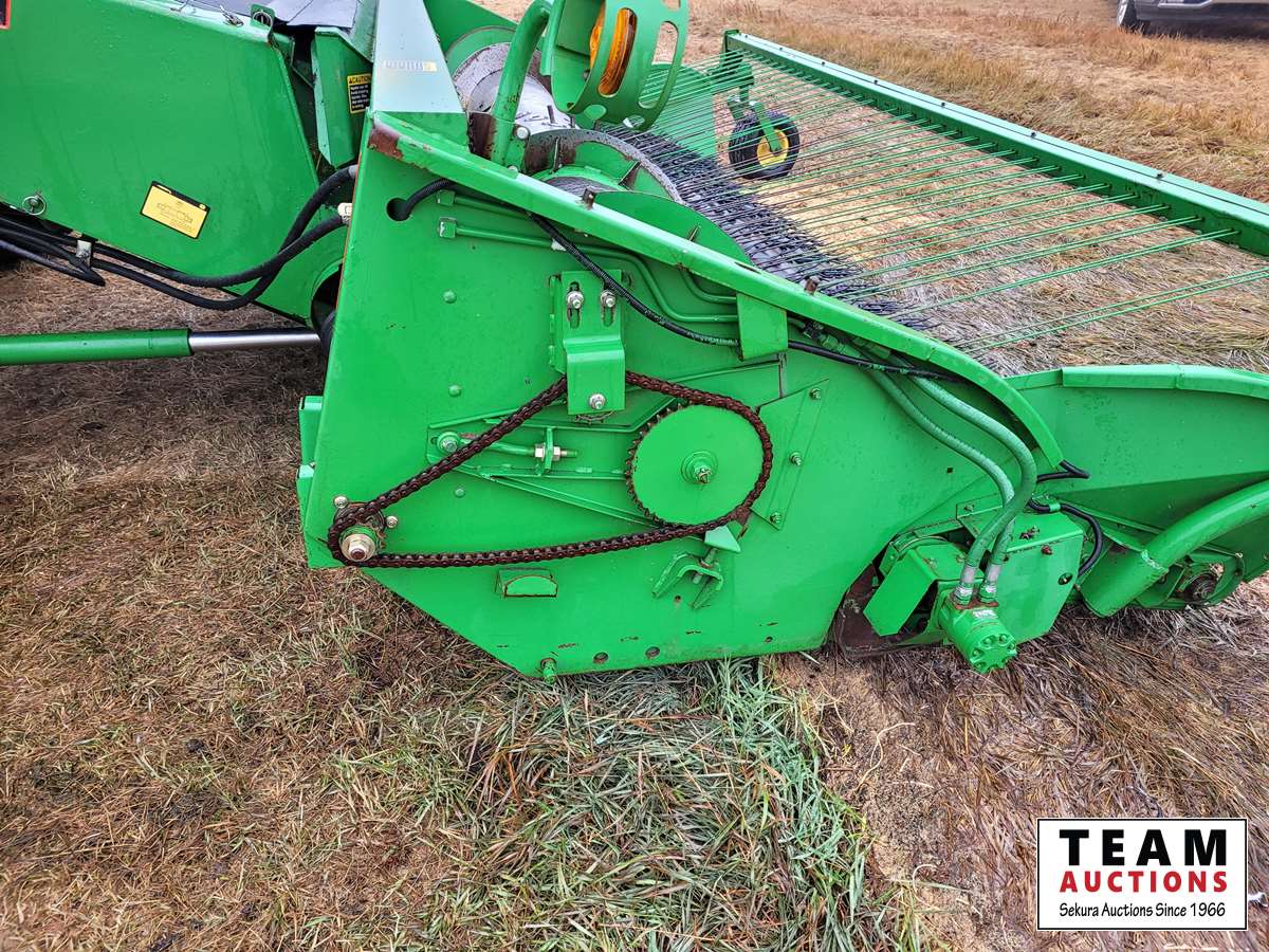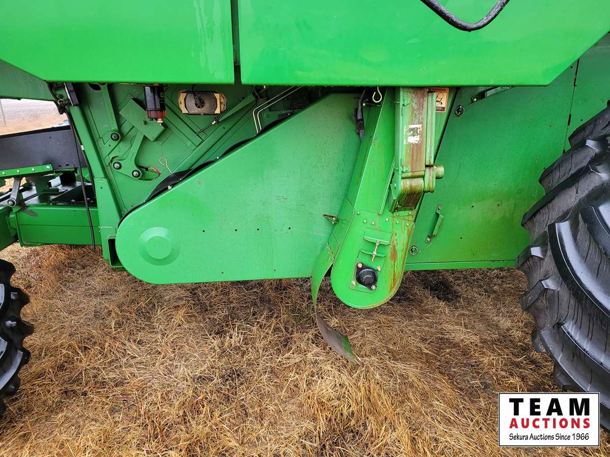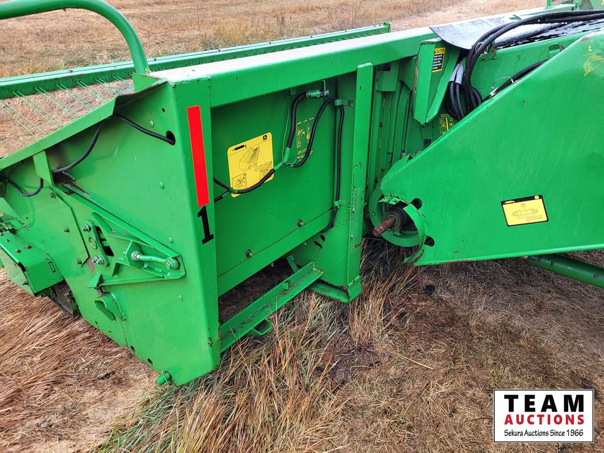 JD 914 14 ft pickup header, tiltable feeder house, outback GPS system, Greenstar compatible, tarped hopper topper, shaft driven, 3895 engine hrs, 2859 threshing hrs