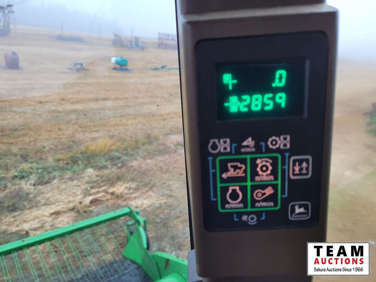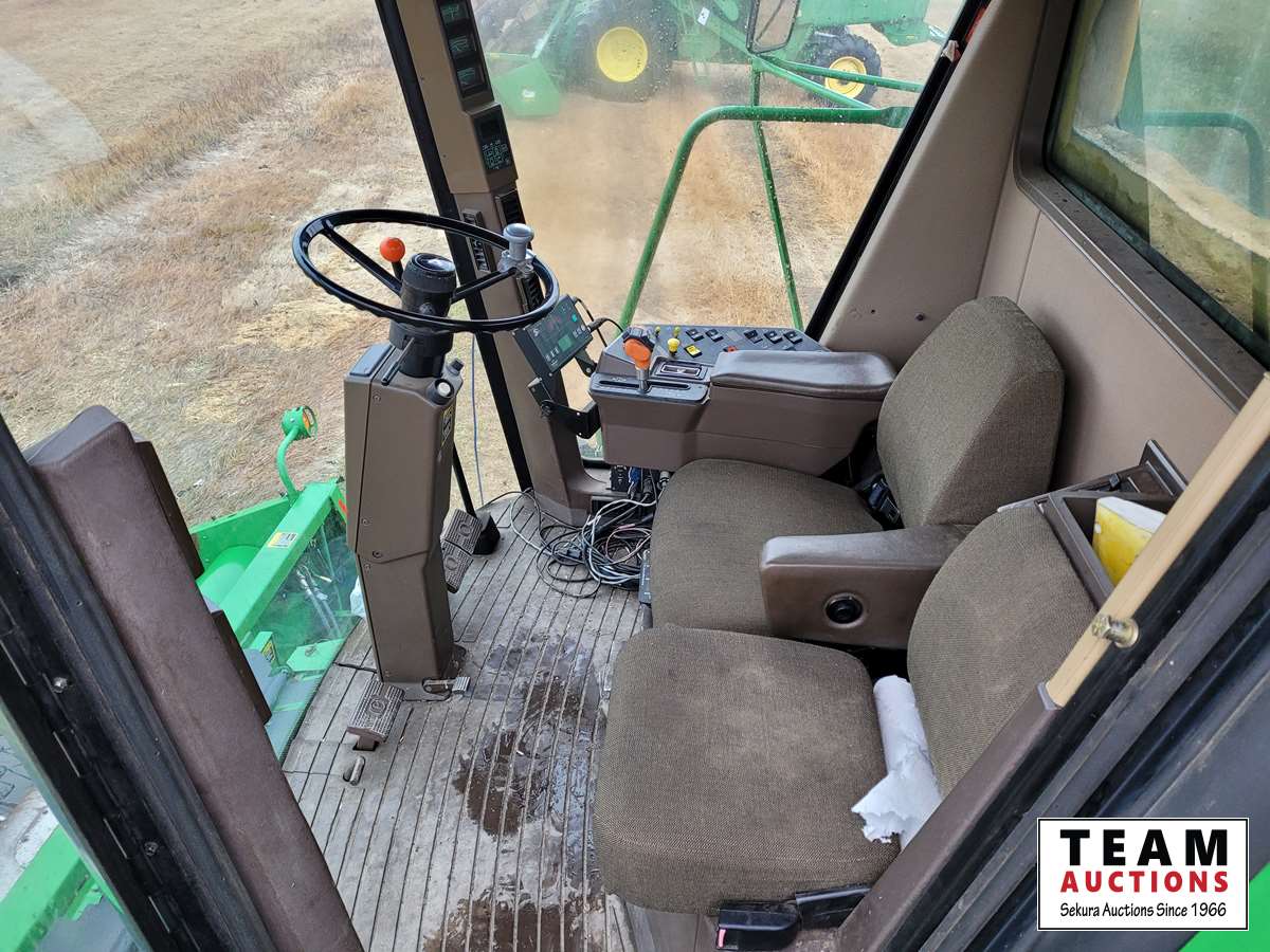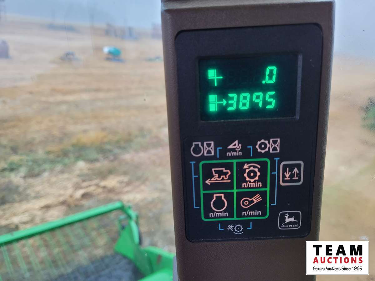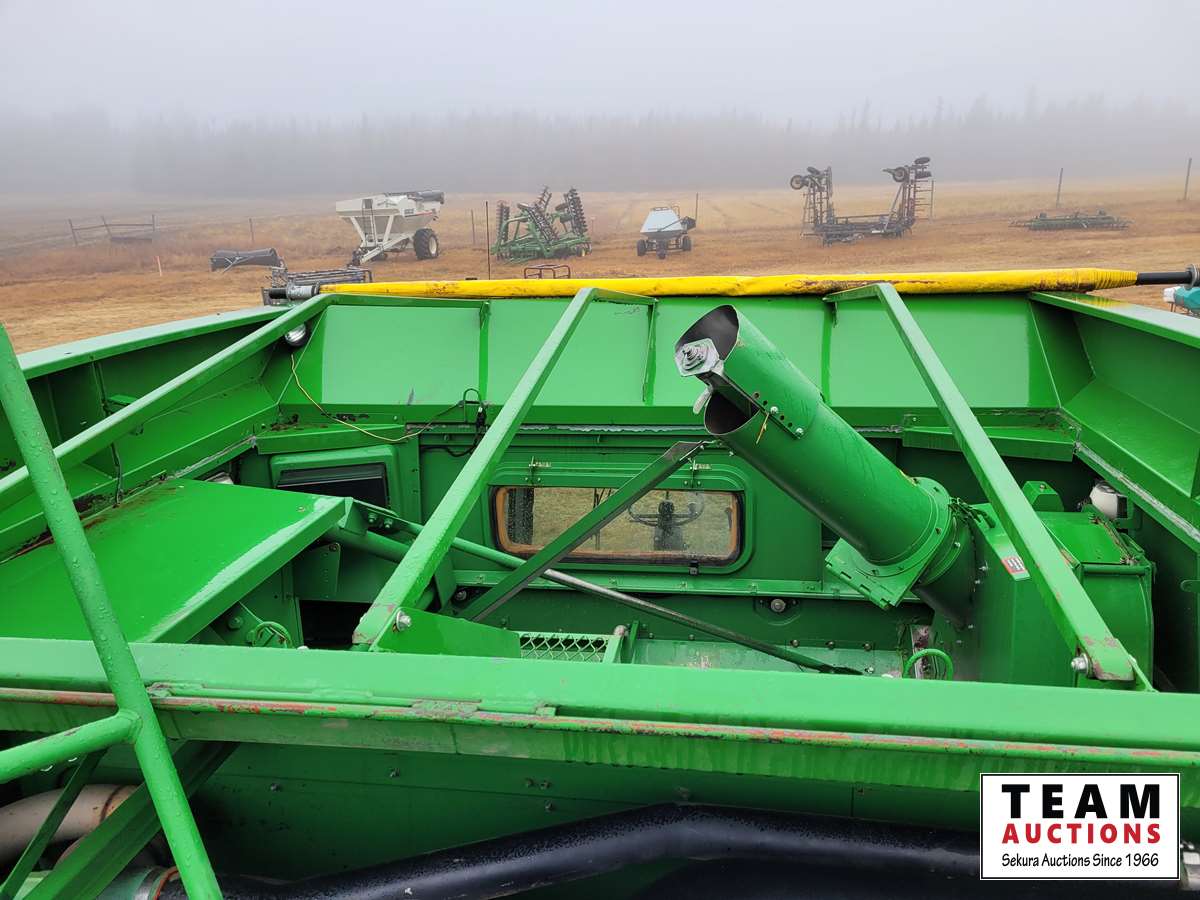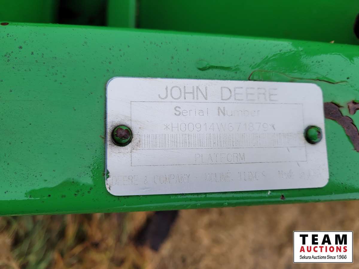 JD 914 14 ft pickup header, tiltable feeder house, outback GPS system, Greenstar compatible, tarped hopper topper, shaft driven, 3895 engine hrs, 2859 threshing hrs