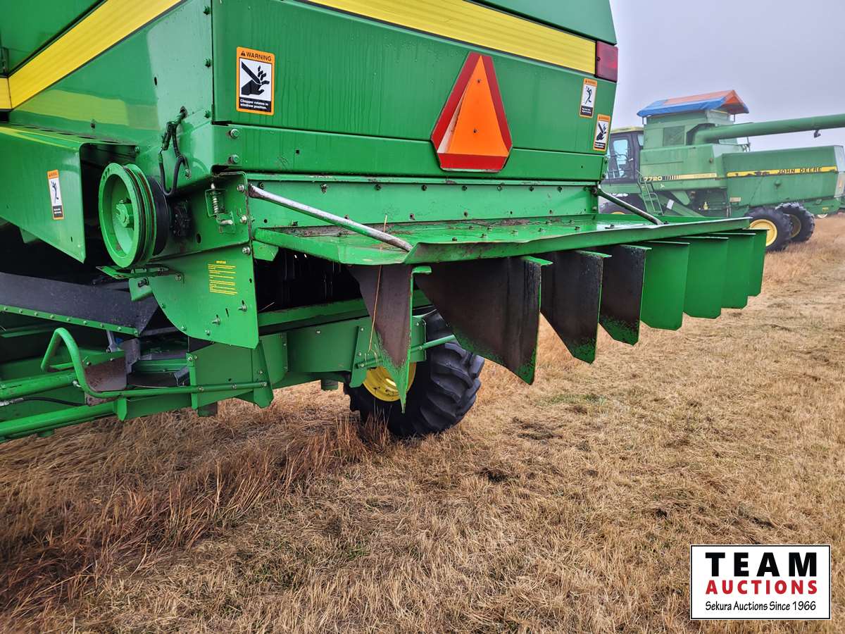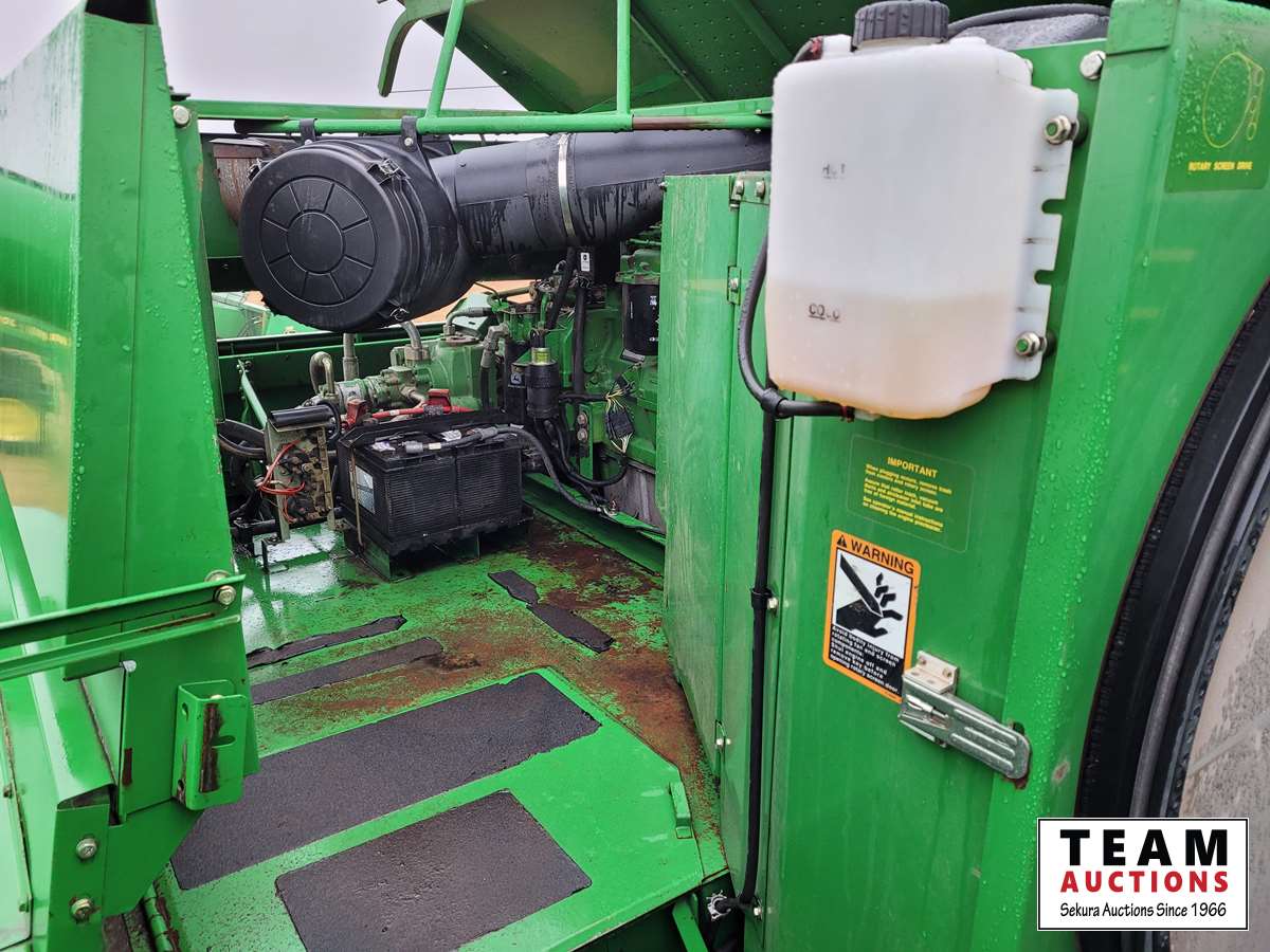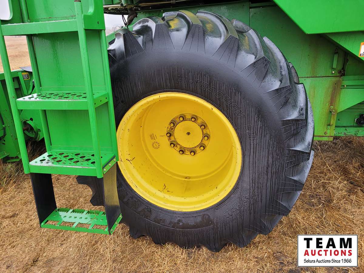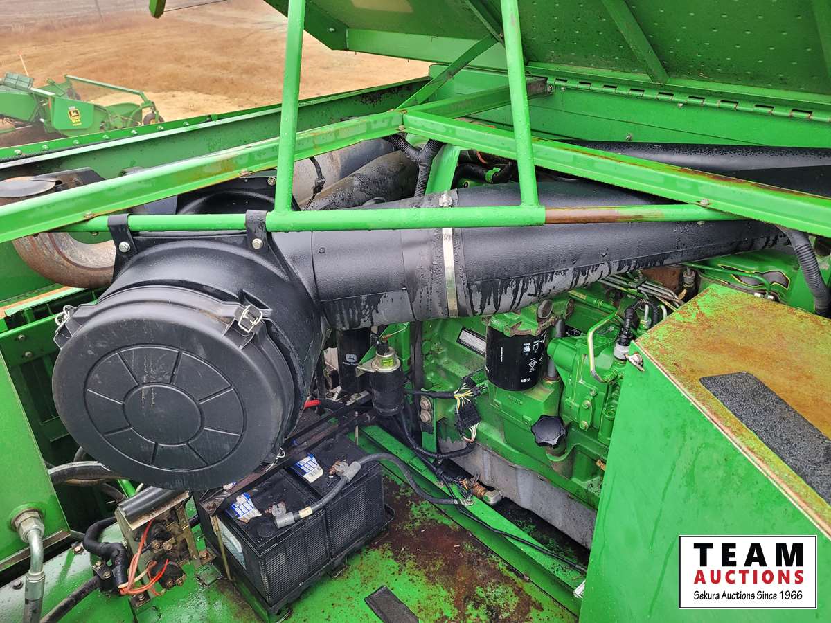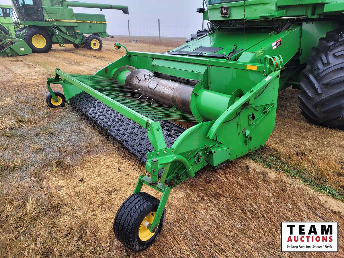 JD 914 14 ft pickup header, tiltable feeder house, outback GPS system, Greenstar compatible, tarped hopper topper, shaft driven, 3895 engine hrs, 2859 threshing hrs