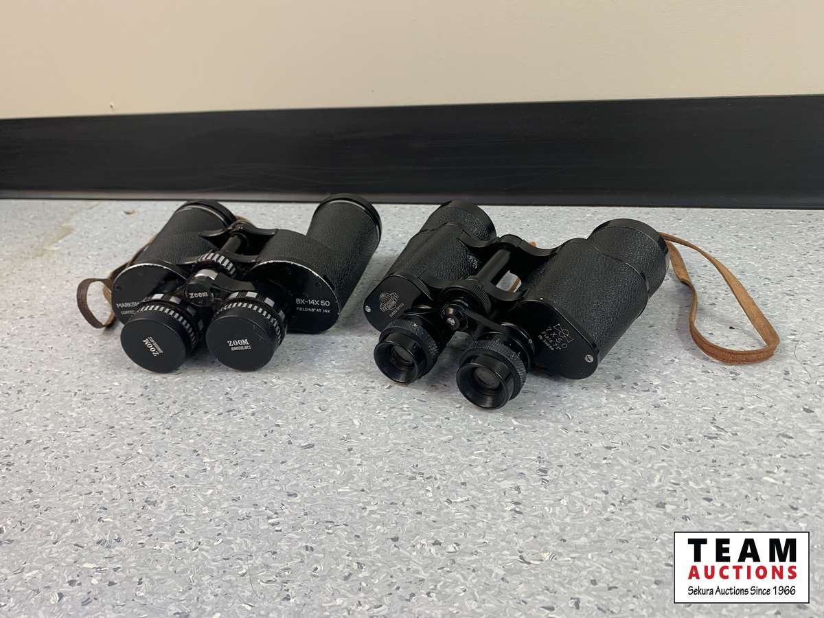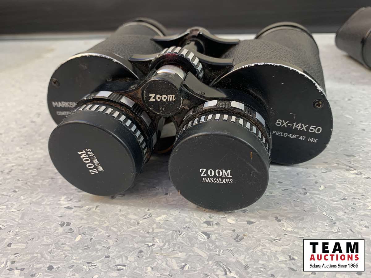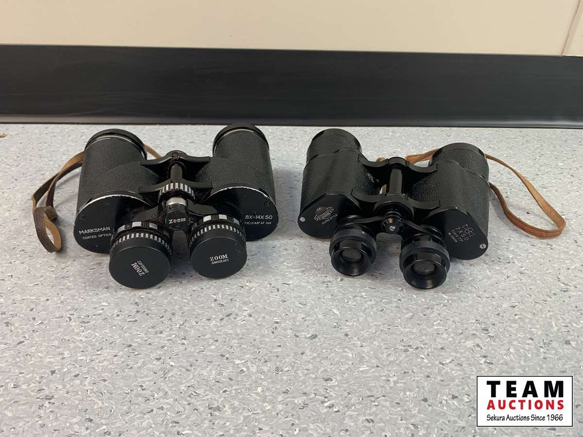 (1) Marksman Coated Optics 8X-14X 50 Zoom binoculars & (1) Universe Coated Optics 7 X 50 Field 7.1 No. 39858
