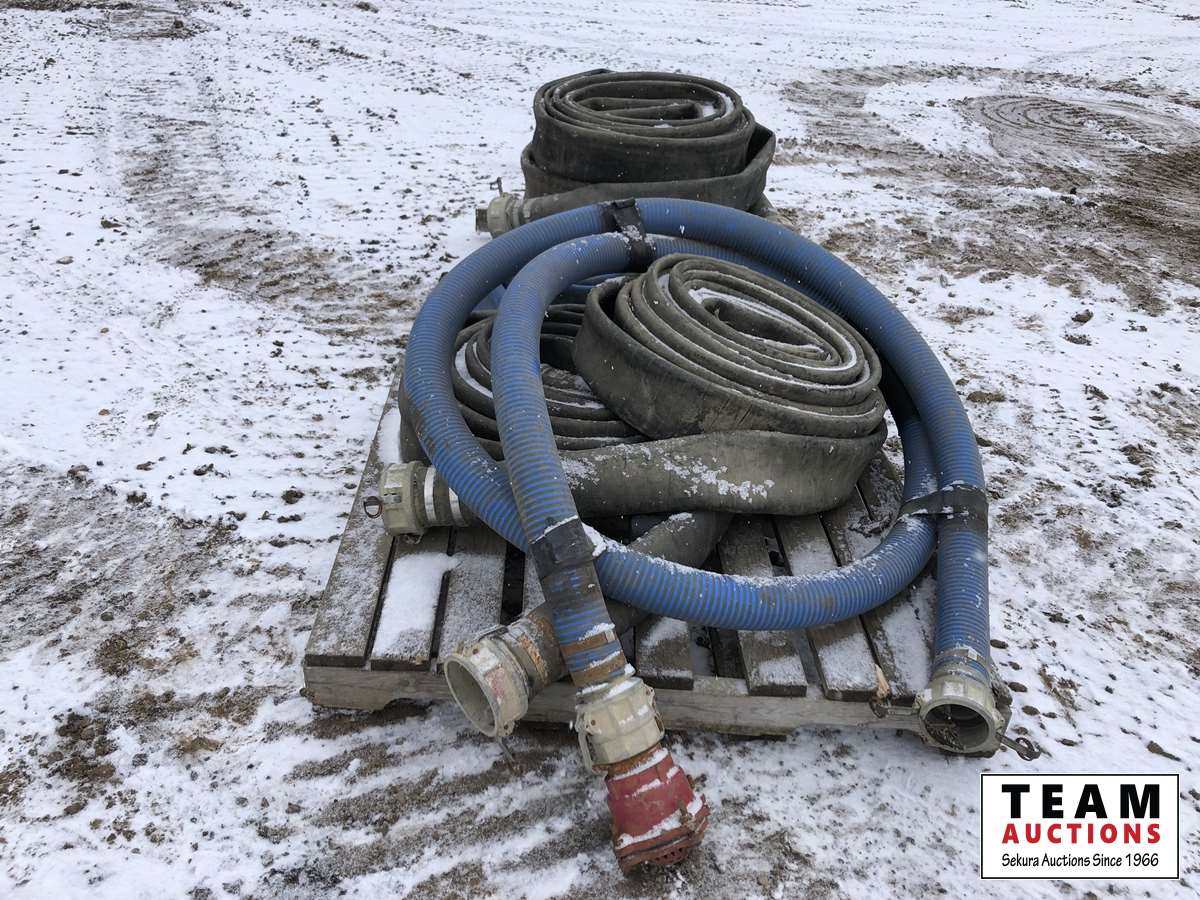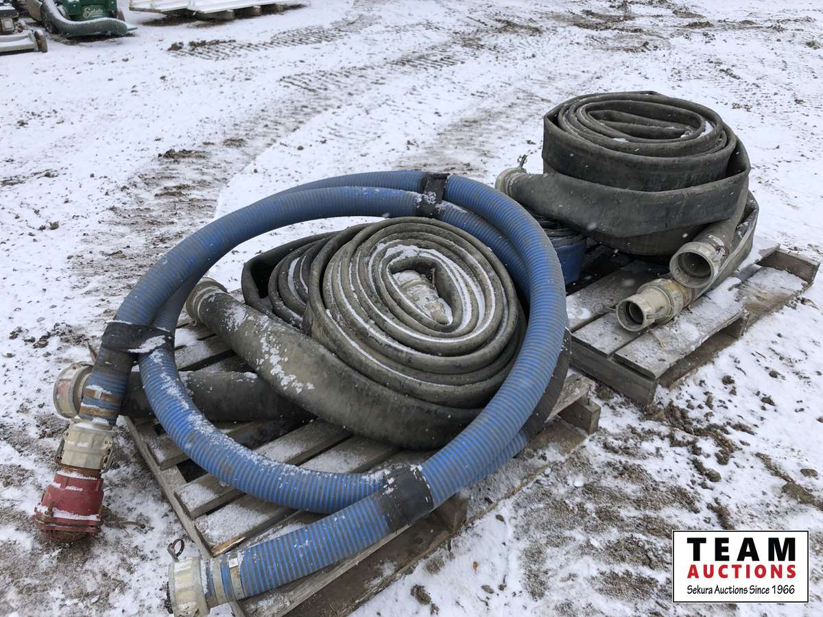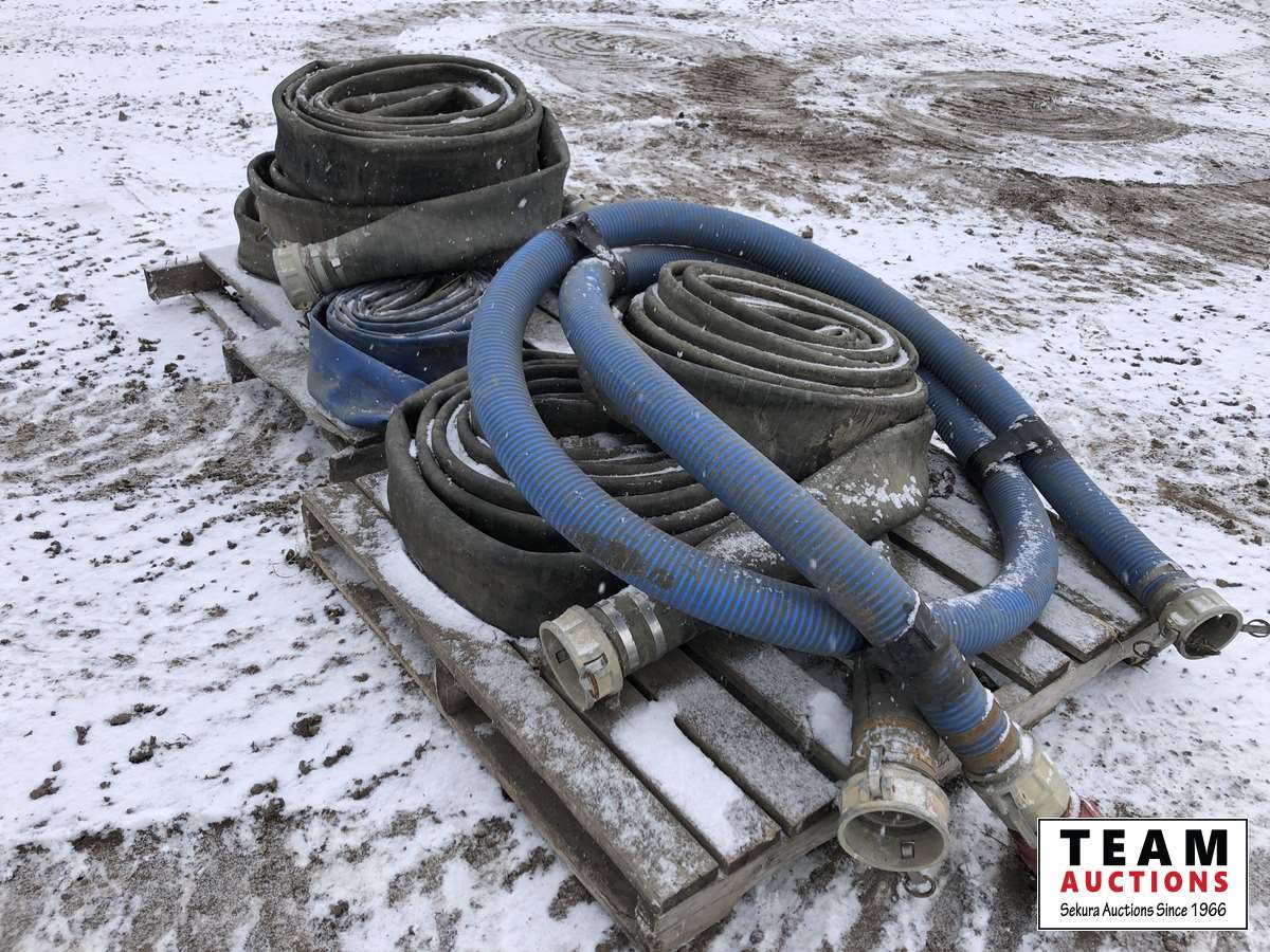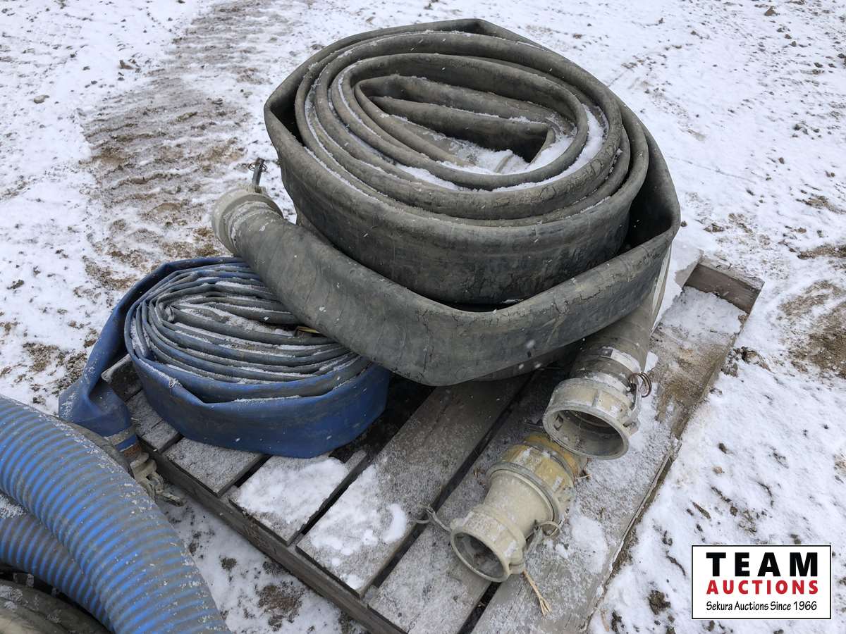 484 (6) Rolls of 4 Inch Flat Hose, (1) Suction Hose