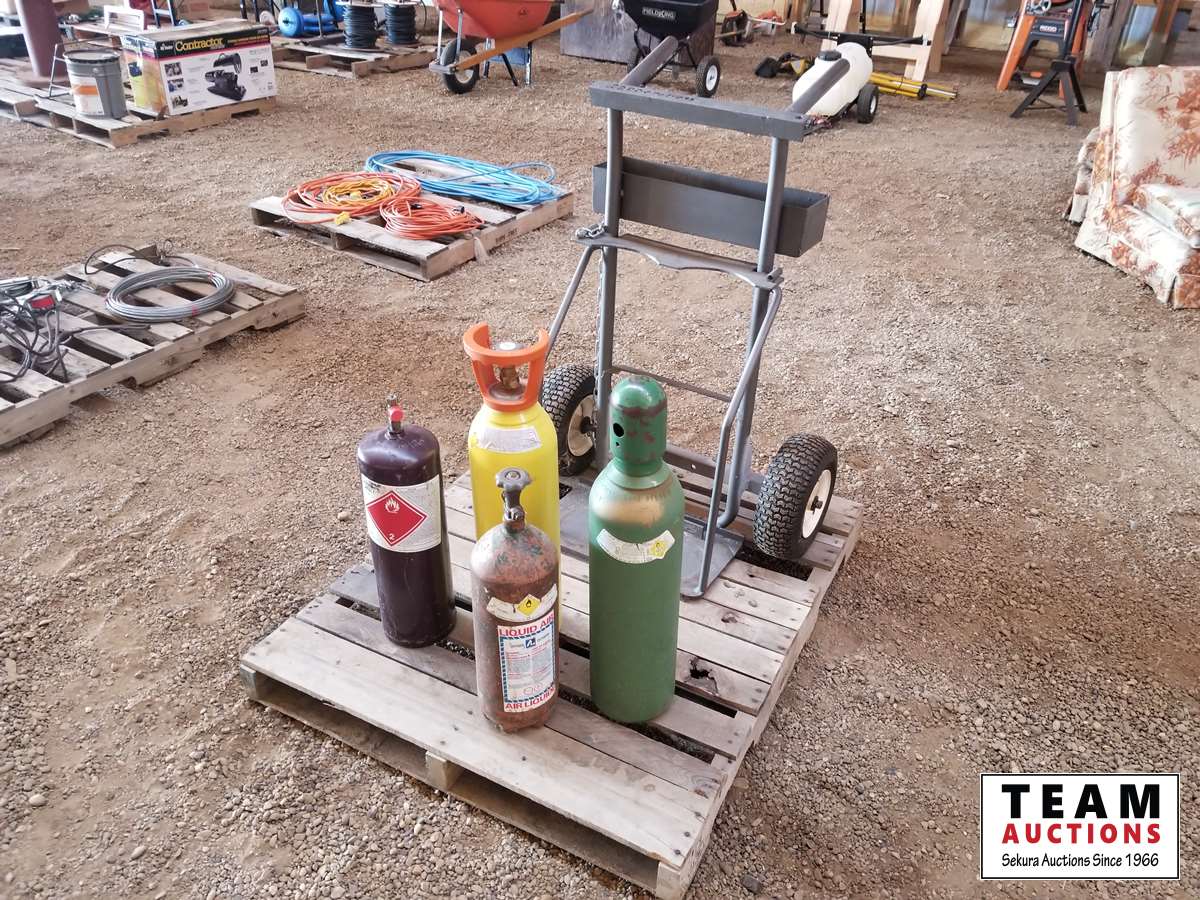 63 Acetylene Tank Cart with (4) Small Bottles