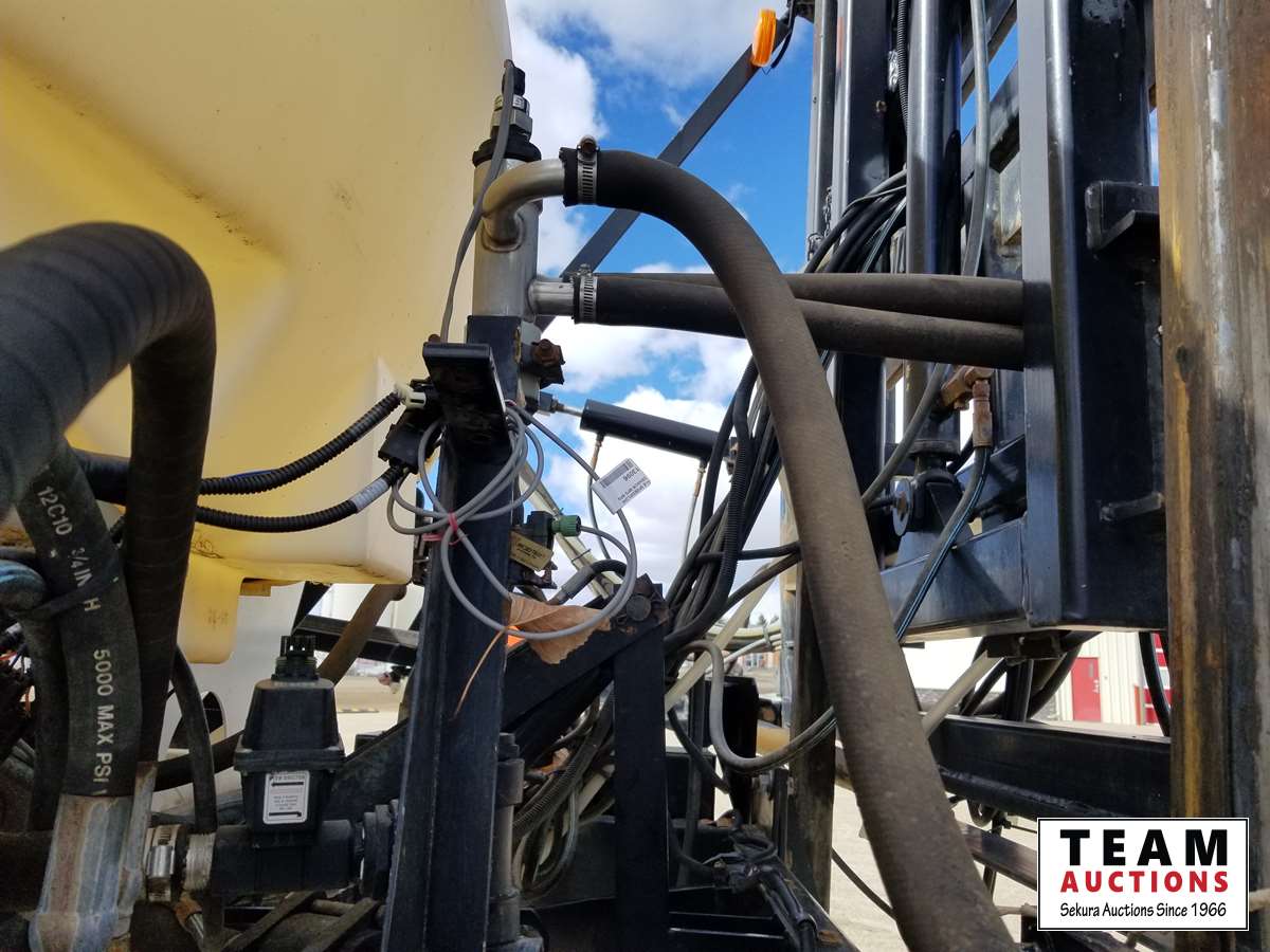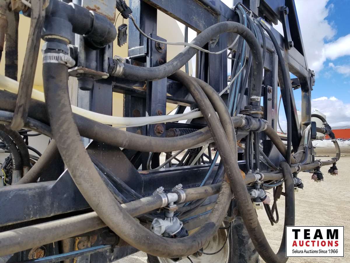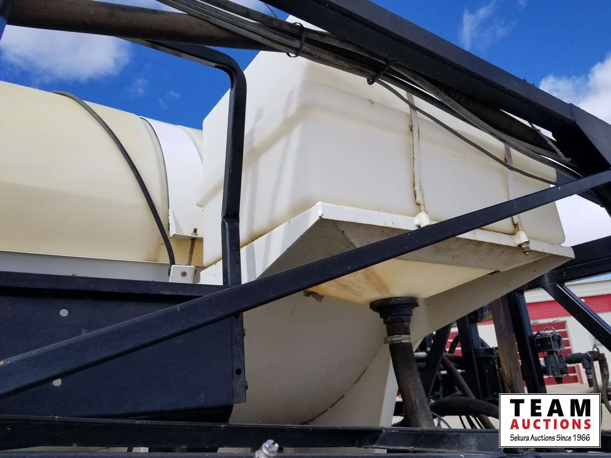 750 gallon tank, 75 ft booms, 20 inch (3) way nozzle spacings (new), plumed for auto steer, new break controller