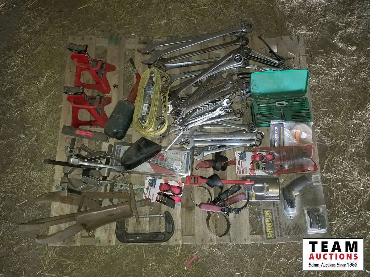 Wrenches, straps, gear pullers, jack stands and miscellaneous