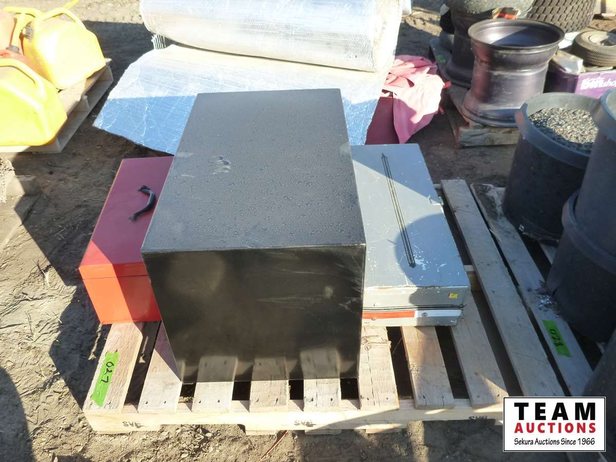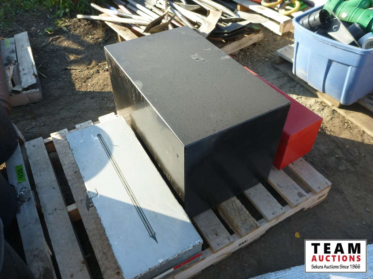 (1) under mount 18 ft X 18 inch X 30 inch storage box new, (2) miscellaneous tool boxes